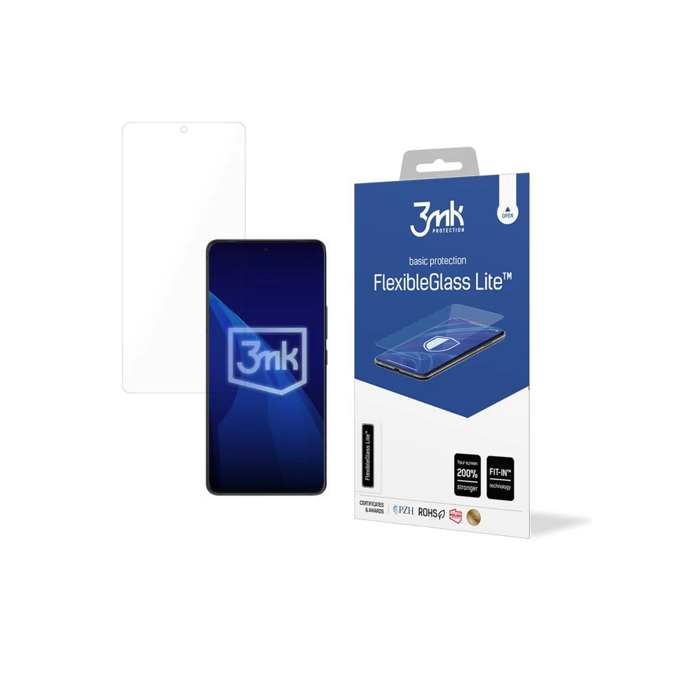 FlexibleGlass Lite is an unbreakable hybrid glass that combines the flexibility of a protective film with the hardness of normal glass. A light and cheaper alternative to our flagship 3mk product, FlexibleGlass hybrid glass. Non-crack and scratch-resistant. Strengthens the mobile phone display and absorbs impact energy. At the same time, it is practically unrecognizable and invisible. Only 0.16 mm thick. FlexibleGlass Lite is currently the thinnest hybrid glass on the market.