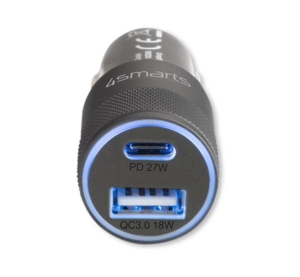 4SMARTS Rapid+ car fast charger Type-C + USB PD 27W grey