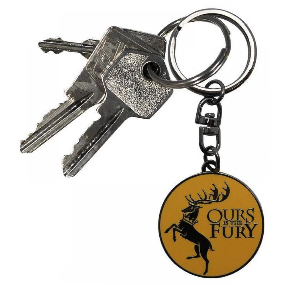 Ours is the Fury metal key ring with Baratheon crest. Diameter: 3.5 cm.