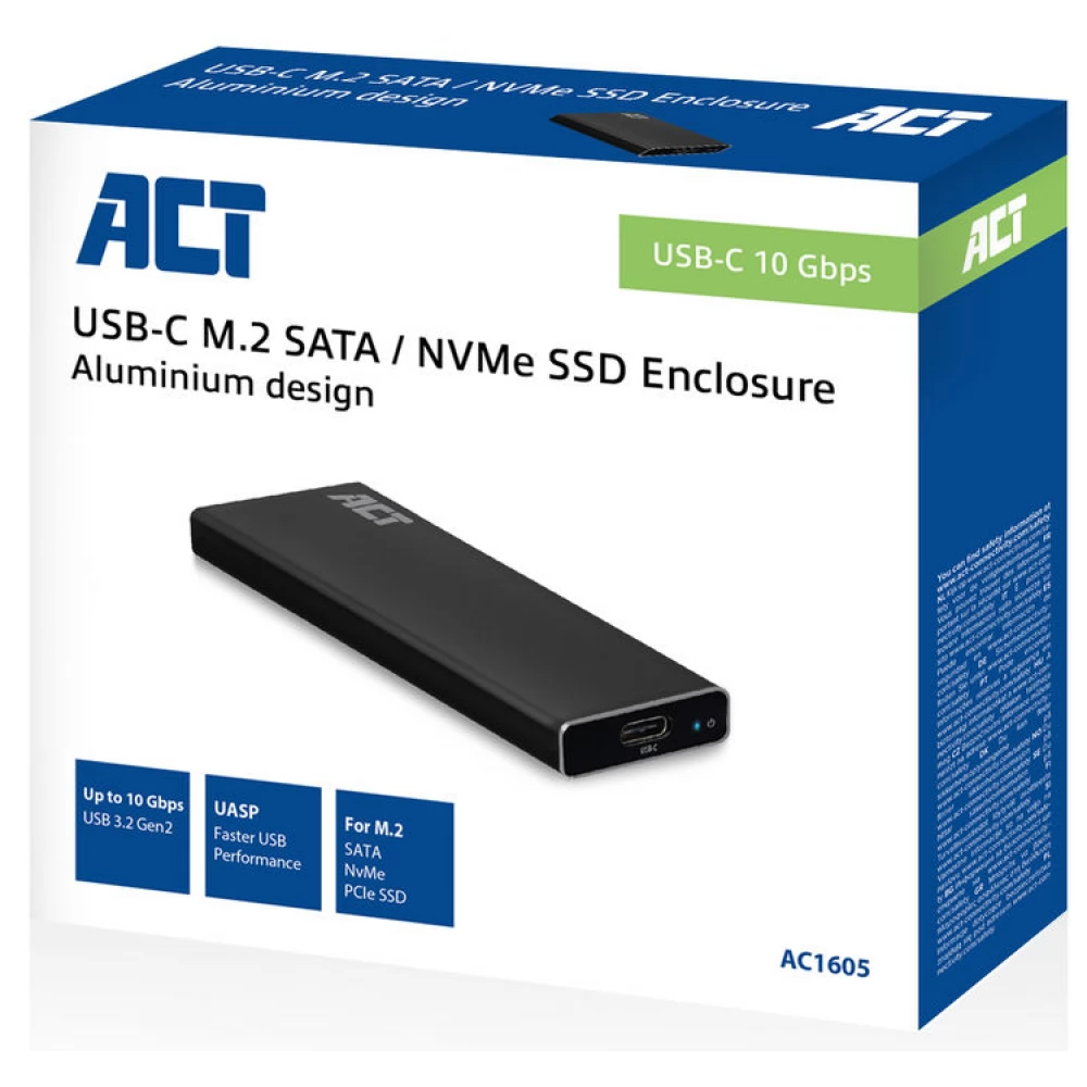 ACT CONNECTIVITY AC1605 M.2 SATA/PCIe SSD USB-A-C 3.1 outer house black