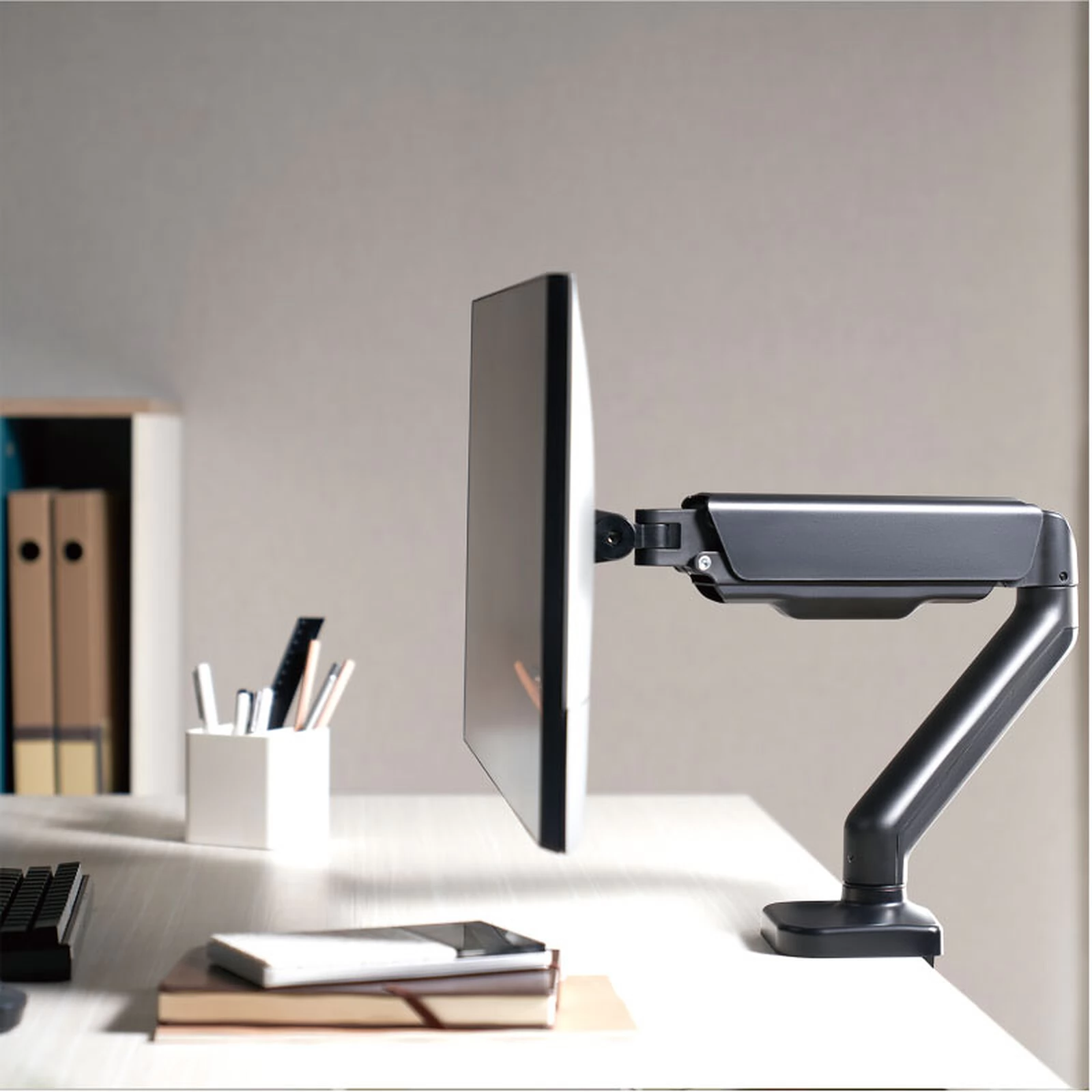 The Advance ADV-ARM1M MecaMounts Single is a desktop mount for flat or curved screens from 17 to 32 inches. Robust, easy to install and use, ideal for continuous adjustment of the screen position, and you can enjoy a more ergonomic working position than ever before. It comes with a universal VESA standard adapter: 75 x 75 mm and 100 x 100 mm.
