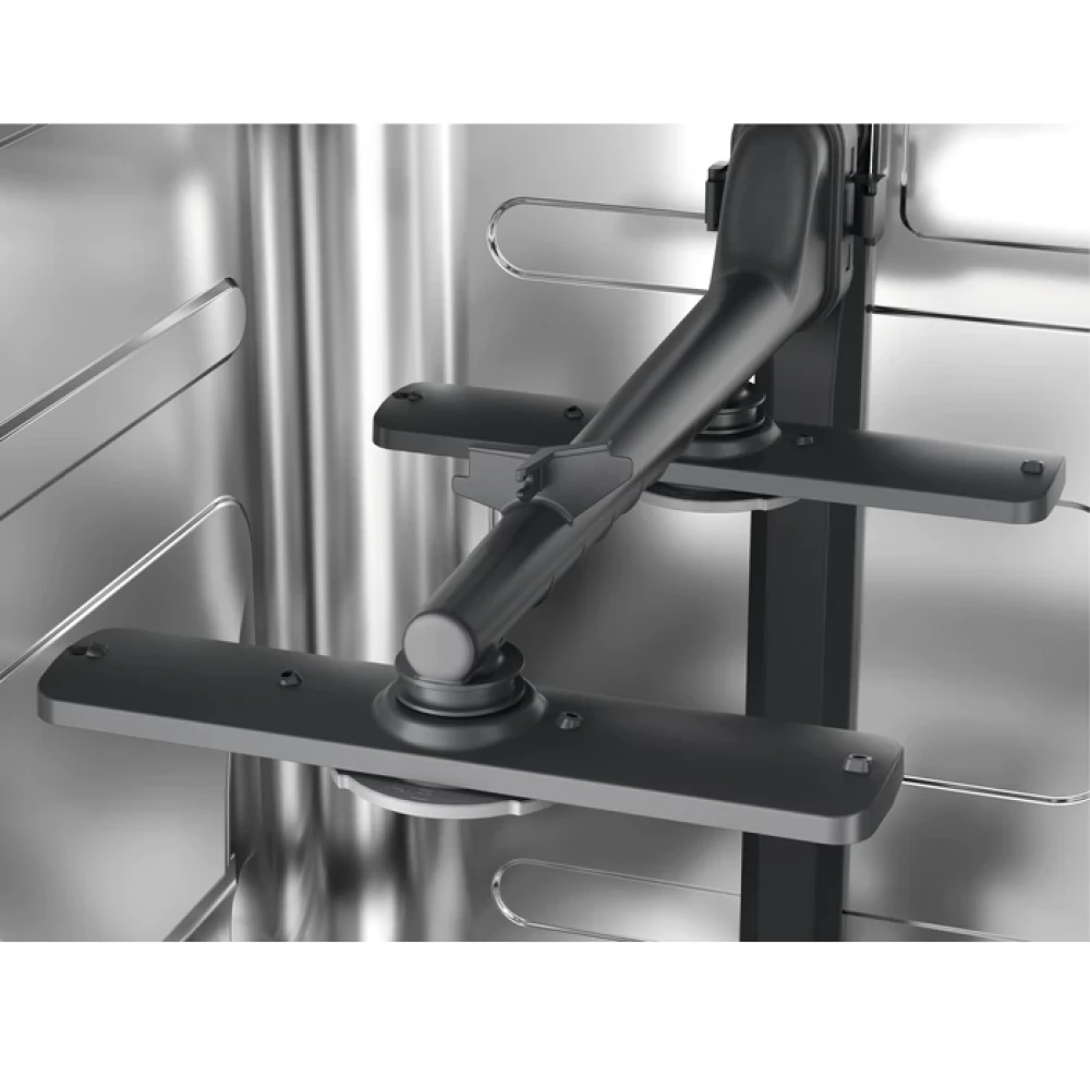 The two sprayers allow you to complete complete coverage in the dishwasher. As the water rays reach all corners of both the lower and the upper basket, they reliably clean the vessels.