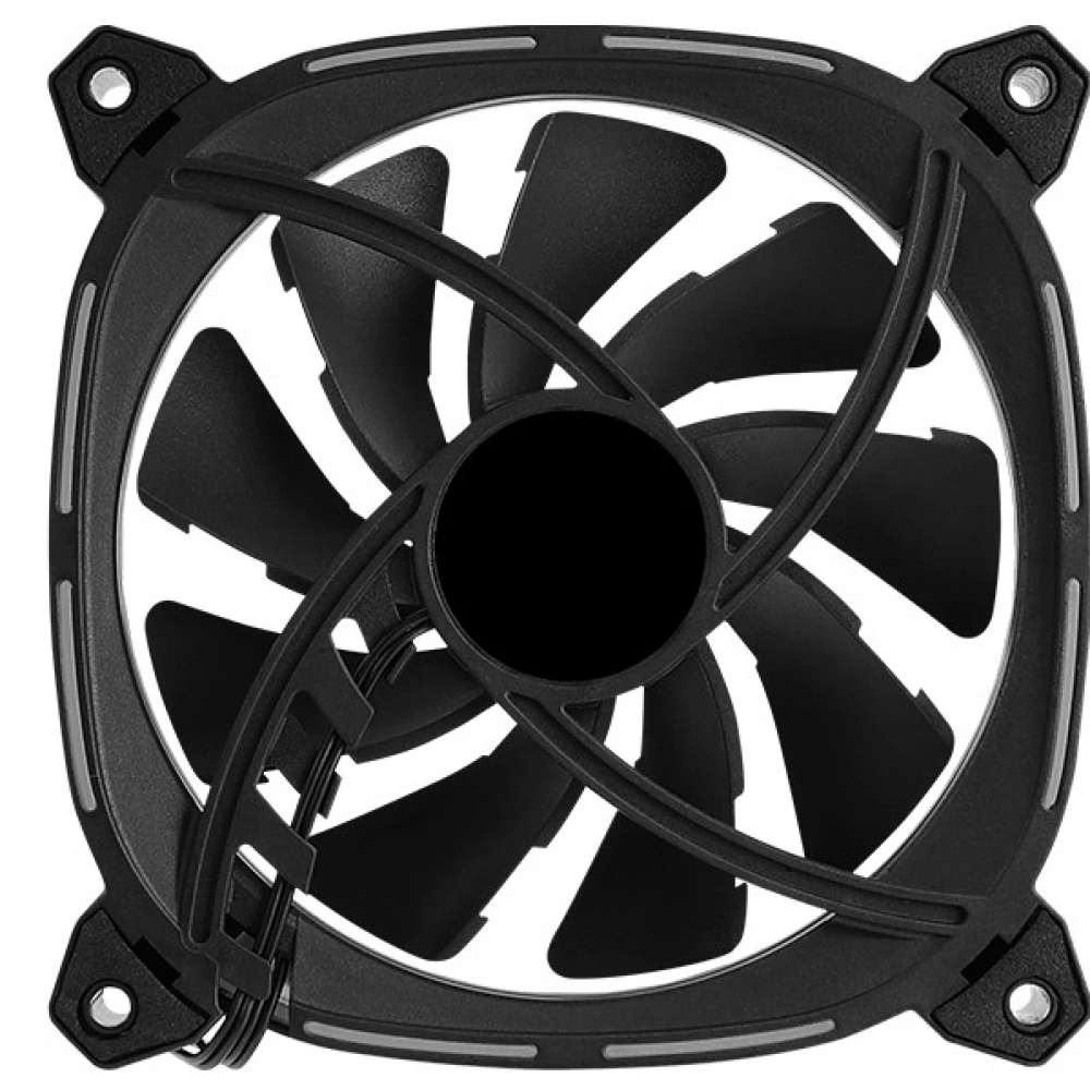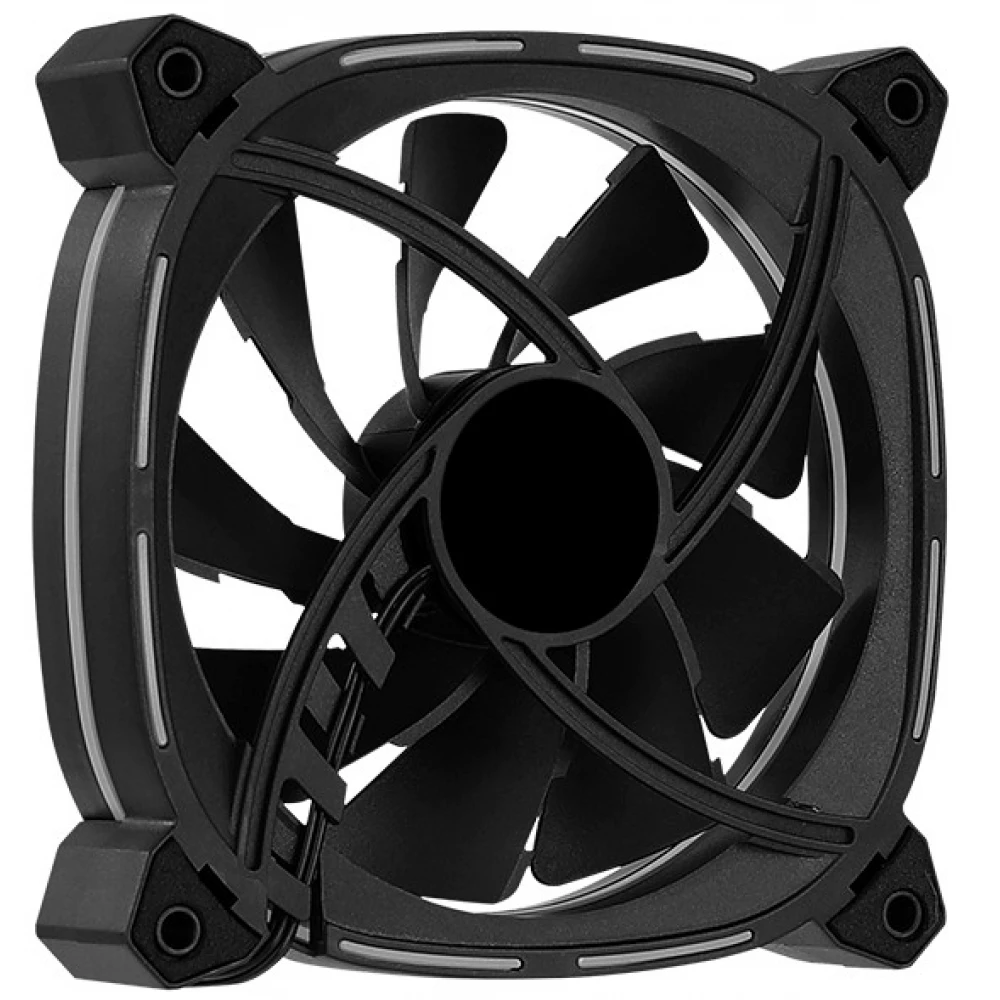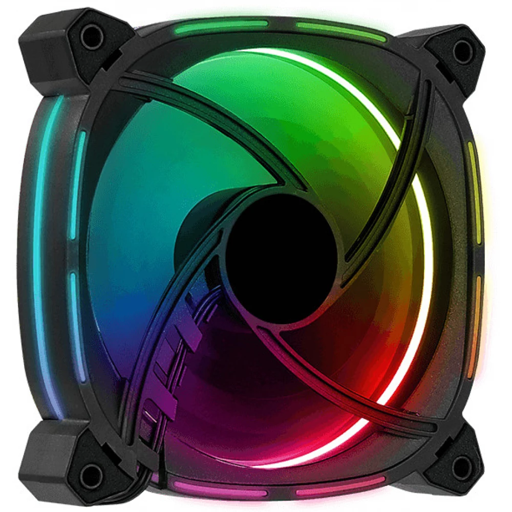 12 cm house cooling fan with controllable ring ARGB LED lighting and anti-vibration mounting brackets.