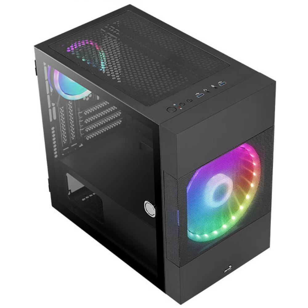 Micro ATX format Mini-tower design computer case with built-in RGB fans.
