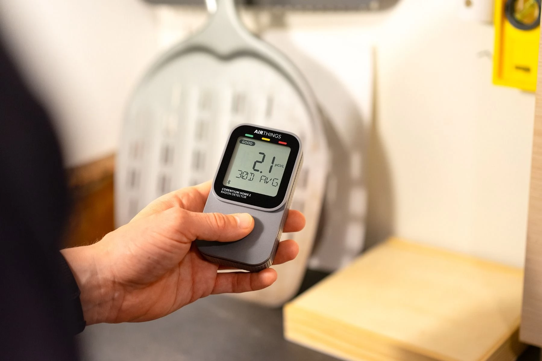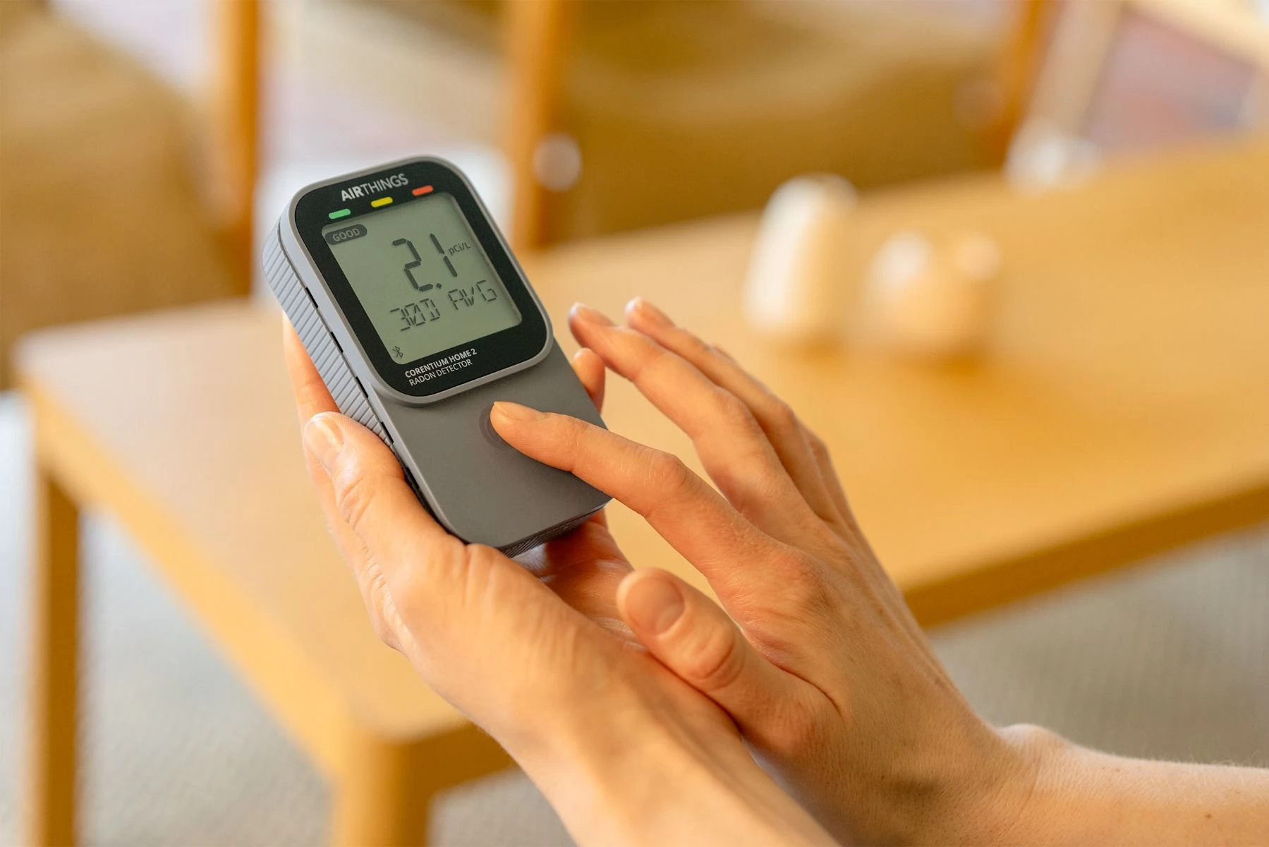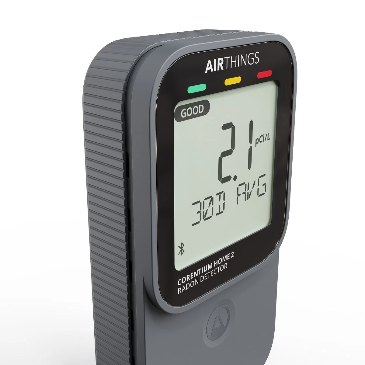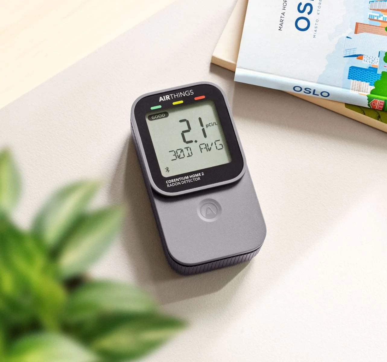 Corentium Home provides 2 -point continuous radon measurement and allows Airthings to connect to easy -to -use graphs, indicators and personalized advice.