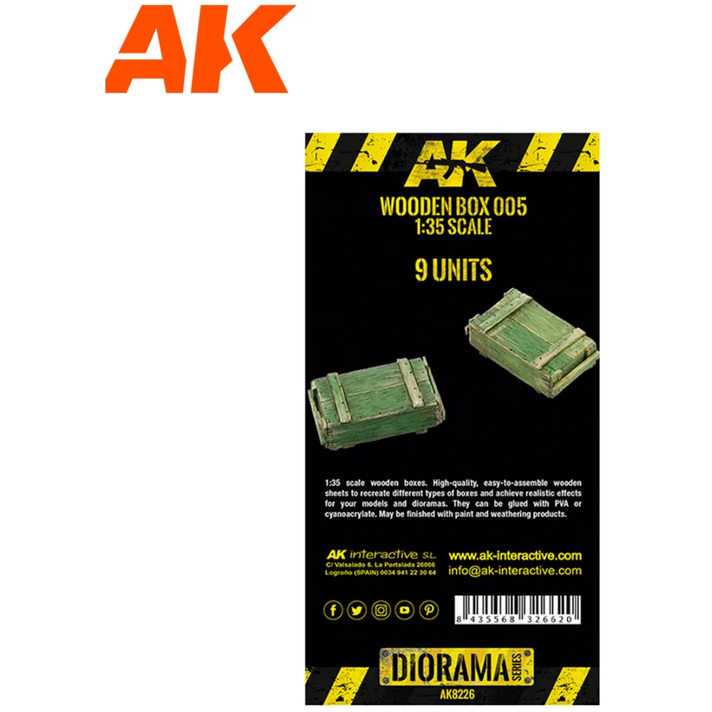 AK INTERACTIVE 1/35 Laser Cut Wooden Box 005 fa box diorama accessory 9 pieces set