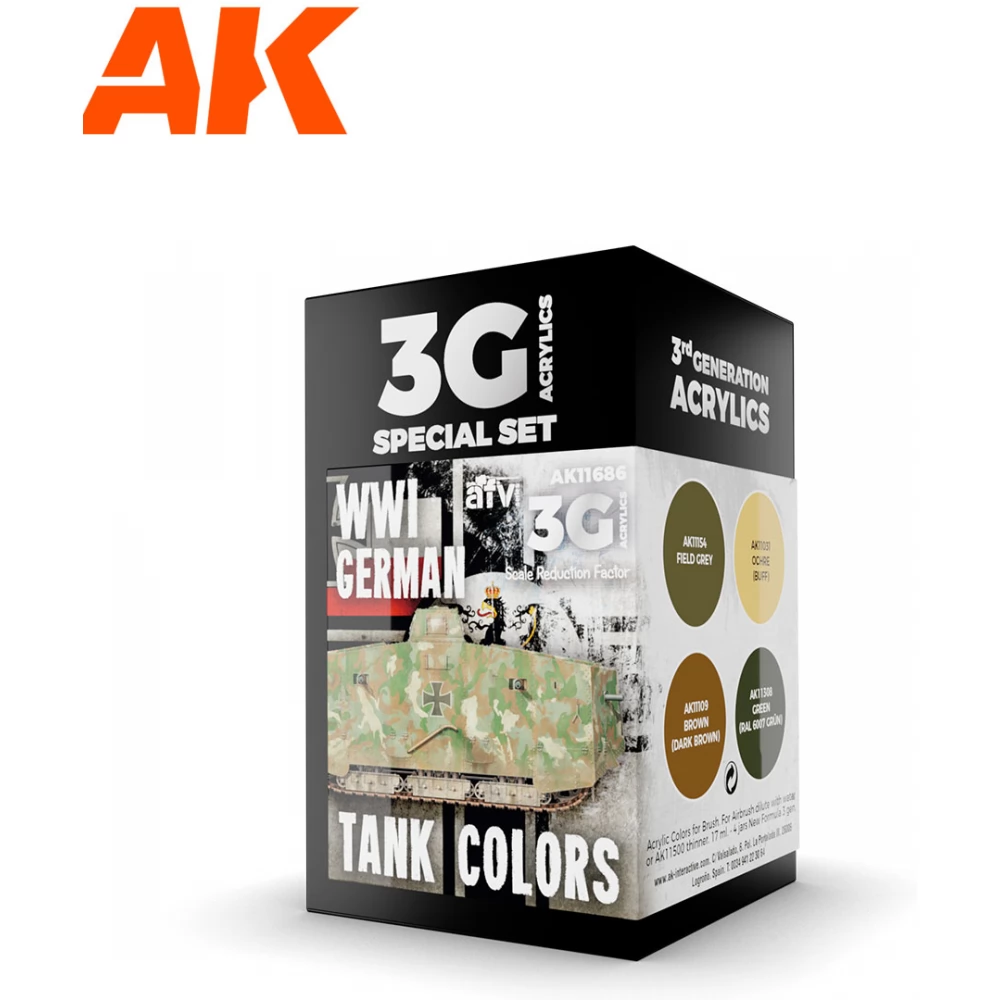 AK INTERACTIVE AFV WWI German Tank Colors acrylic paint stock 4x 17ml