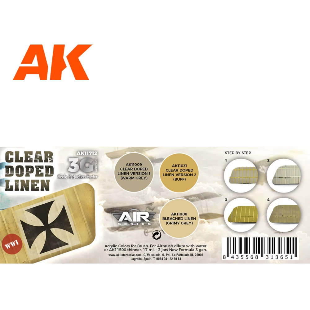 AK INTERACTIVE Clear Doped Linen acrylic paint canvas effekt stock 3x 17ml