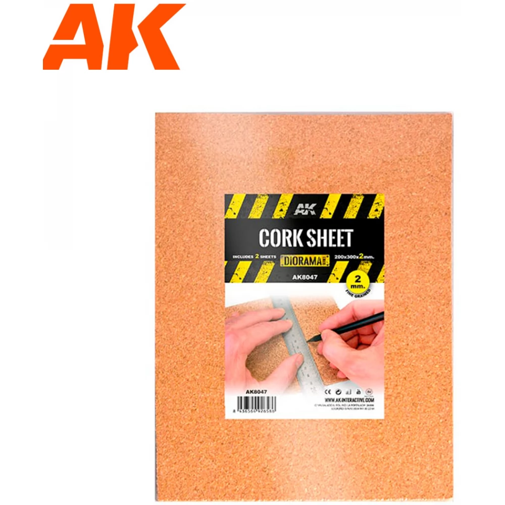 AK INTERACTIVE Corck Sheets - Fine Grained corkwood lap 200x300x2mm 2 pieces set
