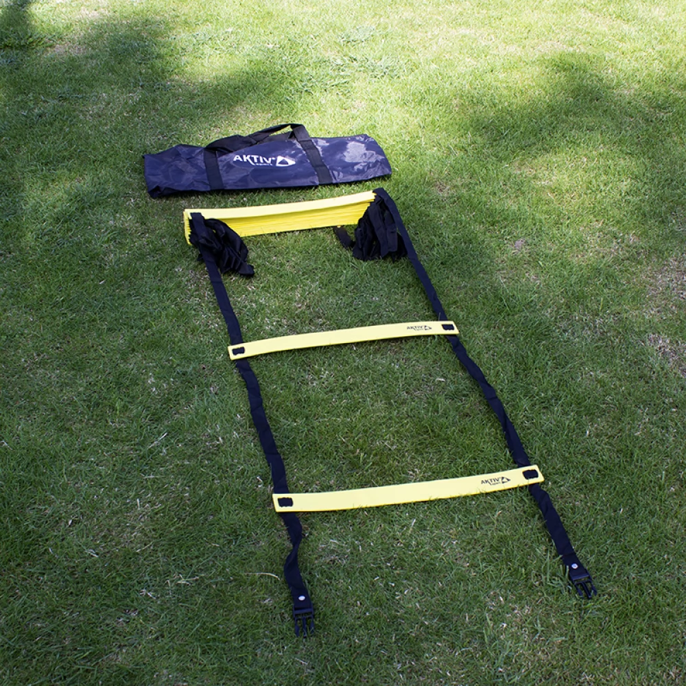 Coordination ladder for training. A versatile training tool. The coordination ladder is made of flexible material, so stepping on it will not cause an accident. With its yellow color, it provides perfect visibility, even for evening training.