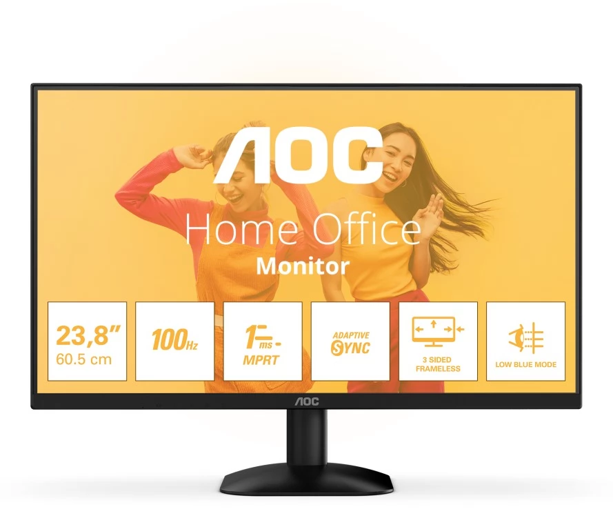 The AOC 24B35HM2 monitor is the perfect choice for everyday use and office work. Due to its low "Blue Light" emission, it protects the eyes during long-term use. It provides a splendid light on the side strips, thus contributing to a lively and effective display.