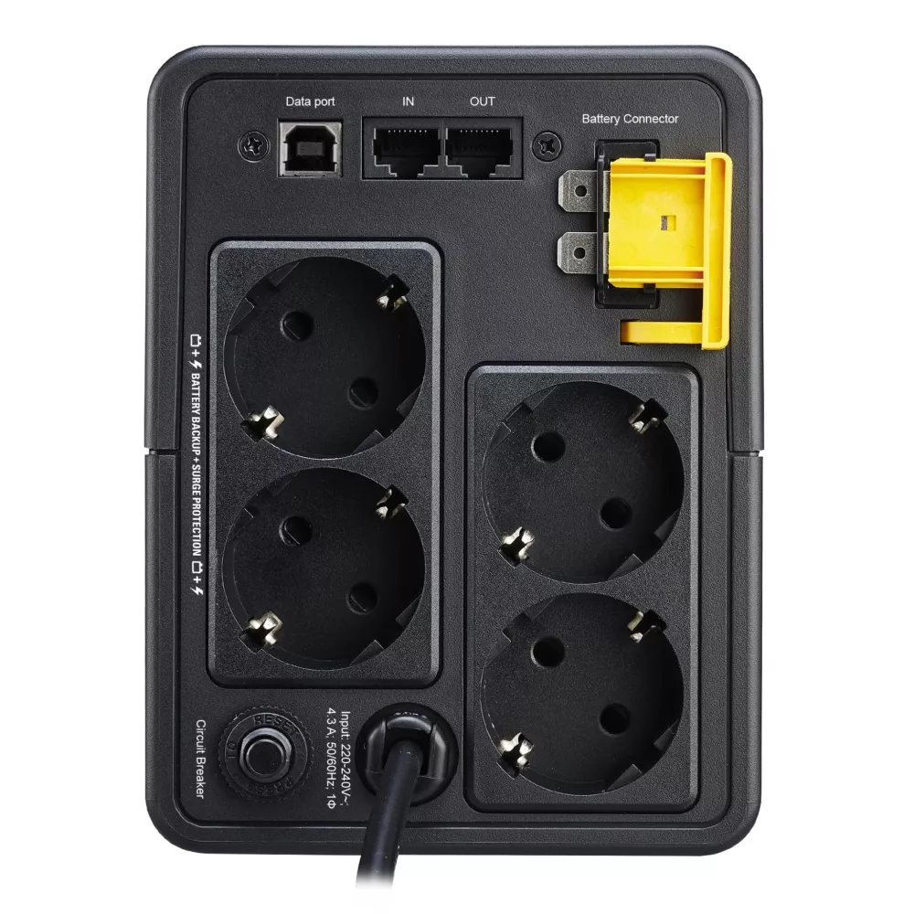 APC Back-ups 950Va is a device used in unexpected power outages so that the system has more time to stop correctly. Its main feature is 230V voltage and German standard (Schuko) sockets. The device is equipped with an automatic voltage regulator (AVR) that quickly adapts to voltage fluctuations and maintains stable power supply.