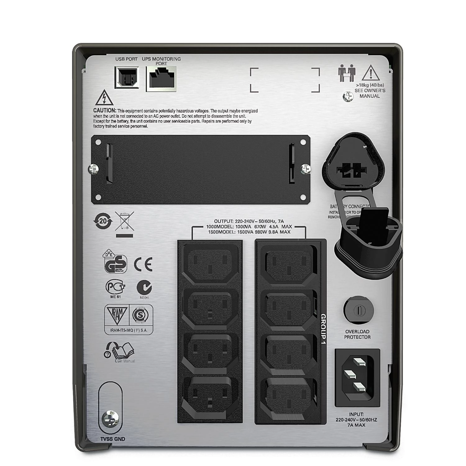 Cold starting provides a temporary power supply if the power supply is lost. Energy Measuring Energy Conscious Users Displays the KWH value of current consumption. Green mode is a patented mode of operation that avoids electrical components that are not in use in good power supply, thus ensuring very high functional efficiency without having to give up any protection. High online efficiency reduces utility costs and produces less heat. Intuitive LCD interface provides transparent and accurate information in multiple languages and allows UPS to configure UPS with easy-to-use navigation keys. Predictive forecast The date of replacement of batteries (year, month), which is recommended based on the long -term maintenance plan, displays the battery exchange date. Clean Sinus Wave Output The battery simulates the service provider entry to ensure the highest degree of compatibility for servers and sensitive electronic devices with an active power factor corrective power supply. Single attachment output group output connector group that can be controlled independently of UPS, allowing for separate restarts of frozen devices, sequential rising and non-critical consumers. SmartSlot with UPS customization with treatment cards. Heat compensation battery charge, based on the actual temperature of the battery, extends the battery life by controlling the charging voltage.