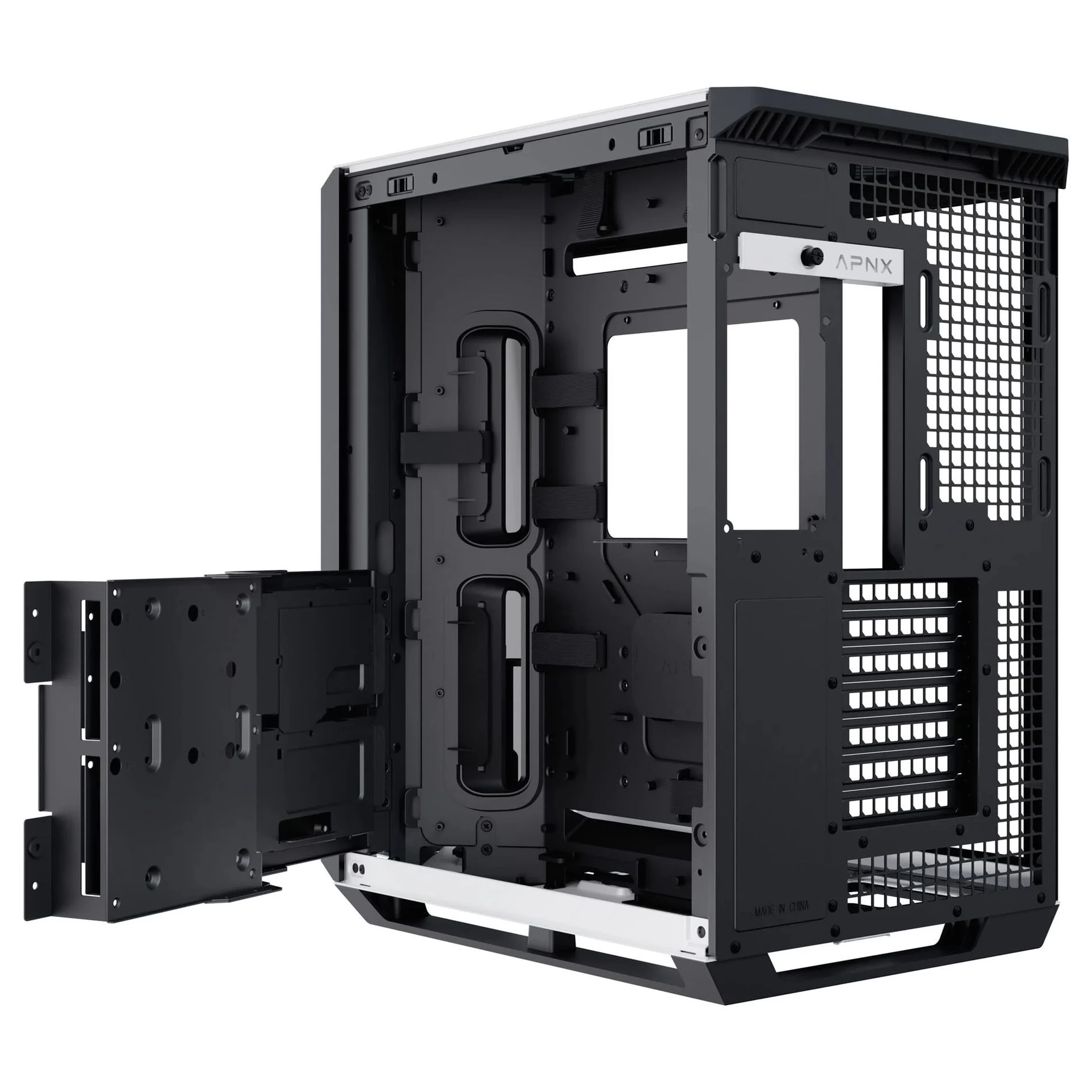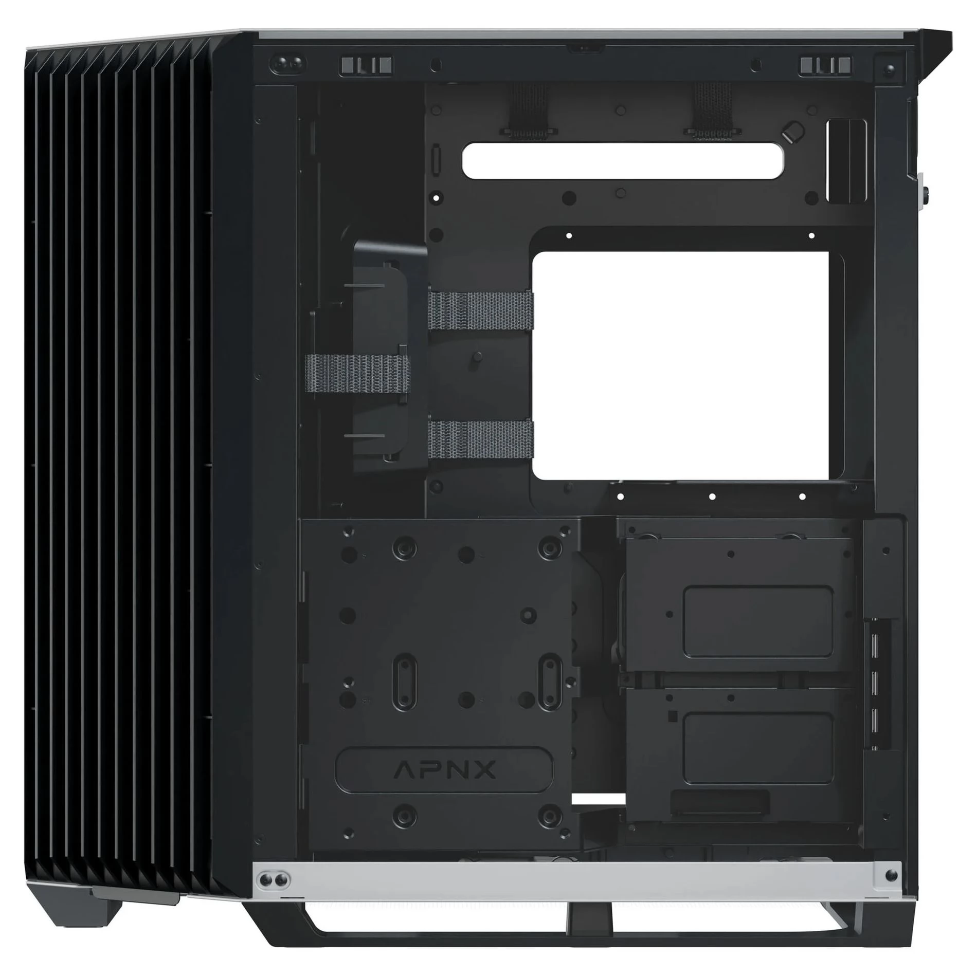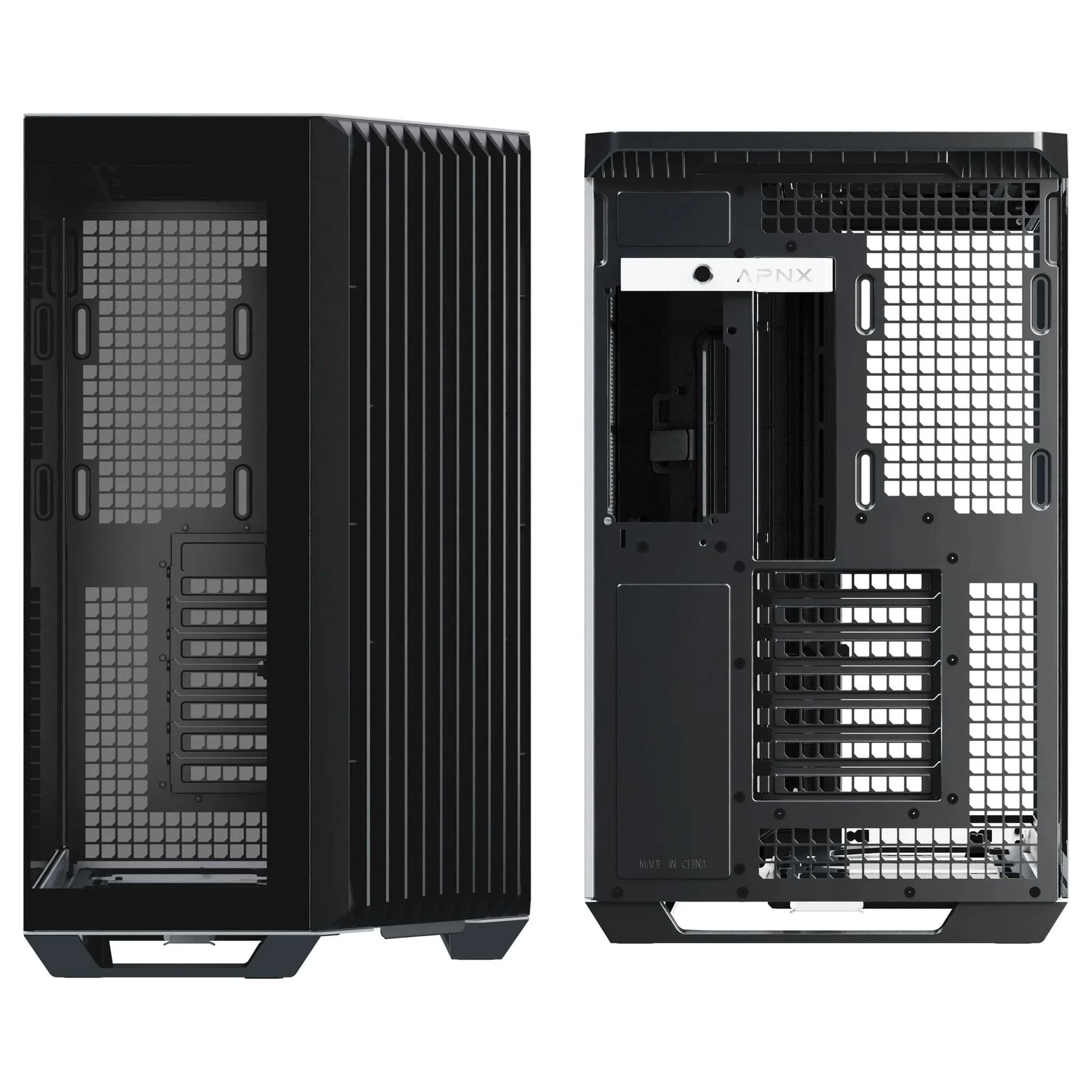 The design of the APNX V1 dual -chamber has a 45 -degree special air intake that maximizes the cooling power of the GPU and CPU. Designed for large structures, the house provides a 395 mm long graphics cards and up to 170 mm high CPU cooles.