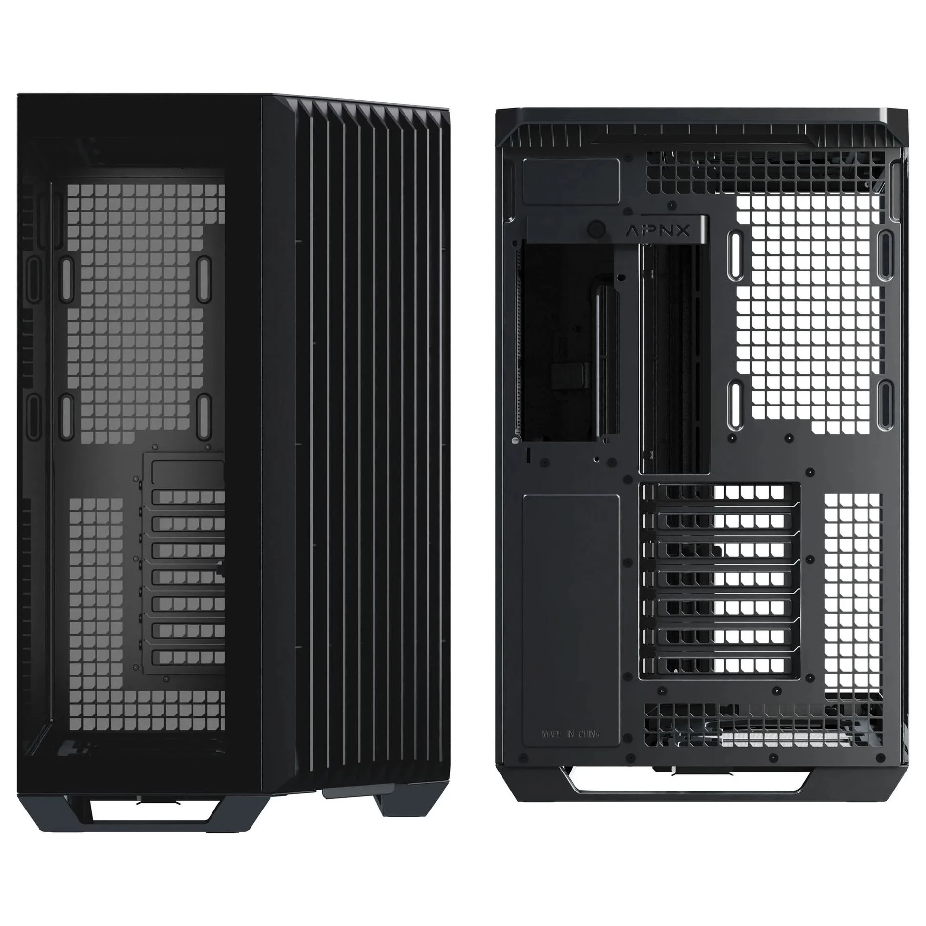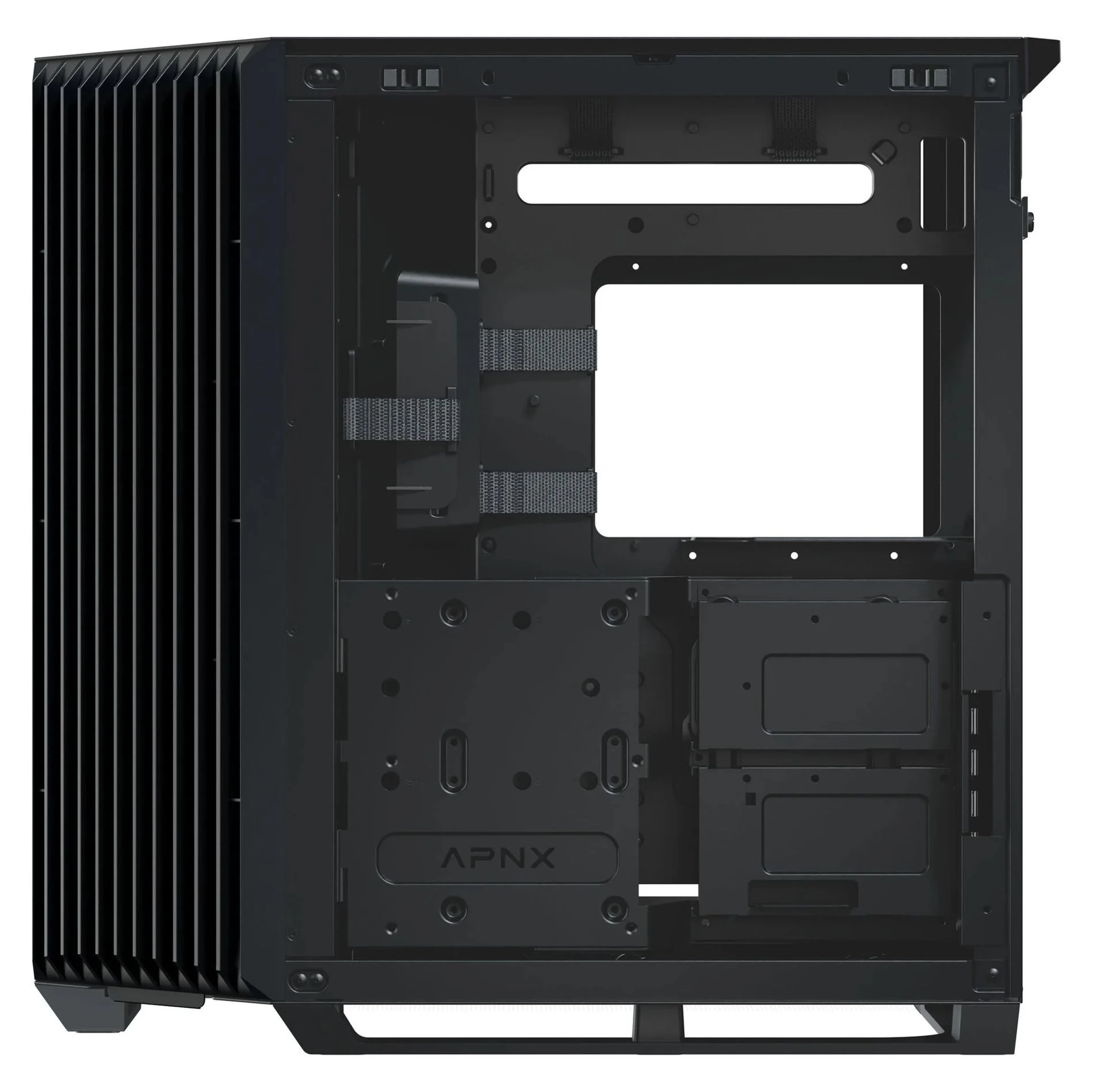 The design of the APNX V1 dual -chamber has a 45 -degree special air intake that maximizes the cooling power of the GPU and CPU. Designed for large structures, the house provides a 395 mm long graphics cards and up to 170 mm high CPU cooles.