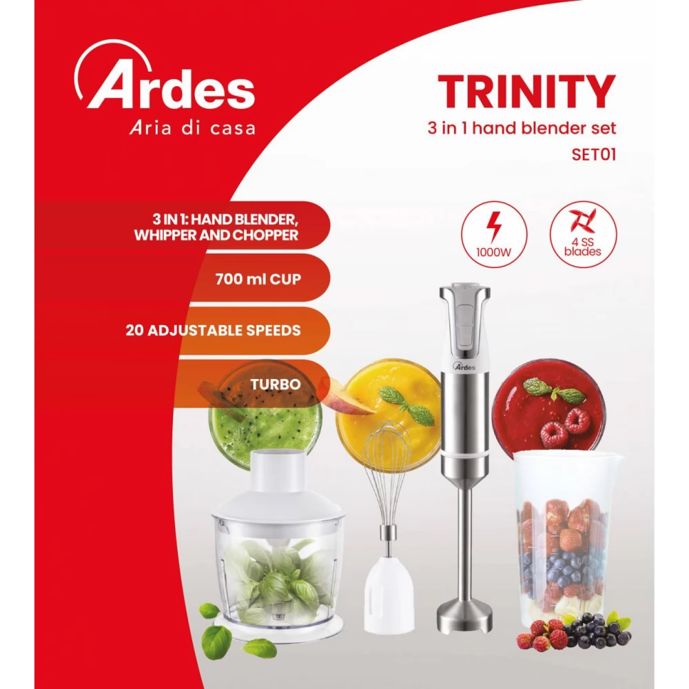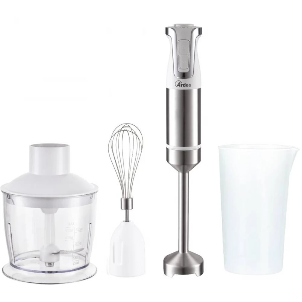 - Accessories: immersion mixer, whisk, chopper, 700 ml measuring cup