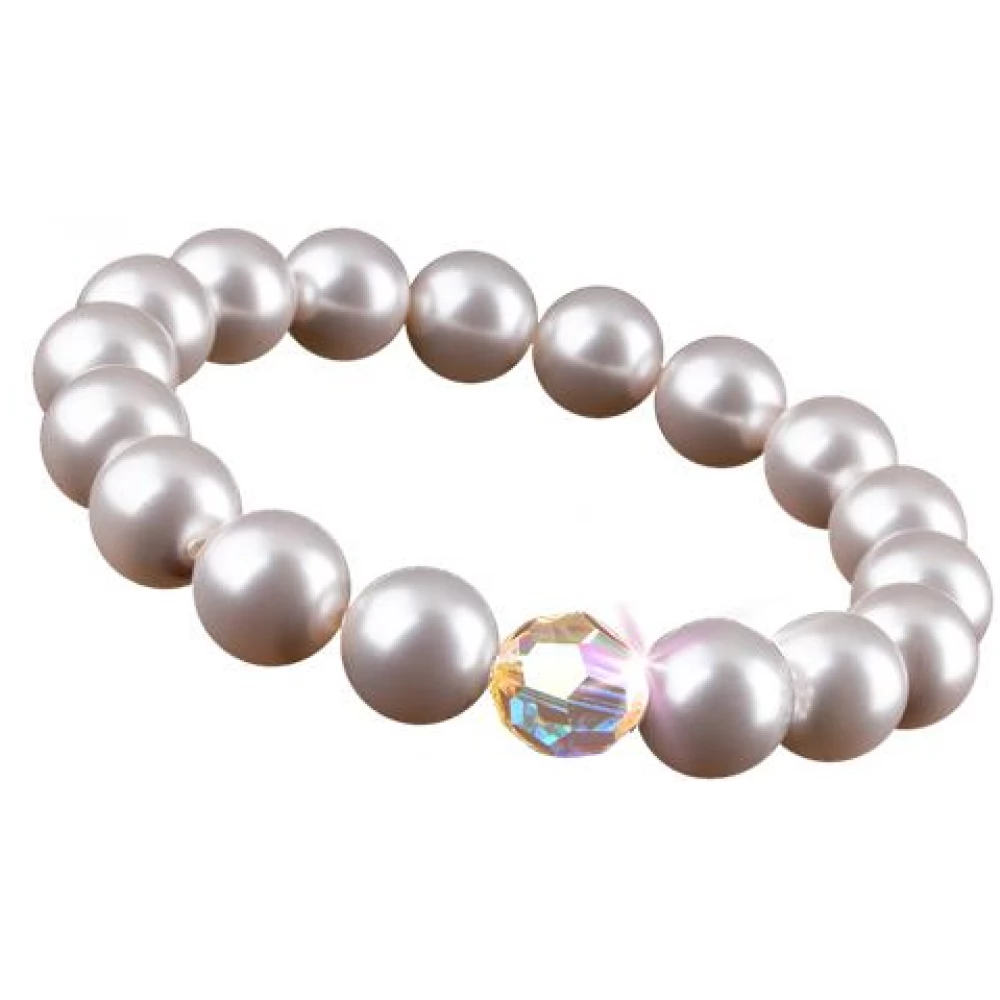 ART CRYSTELLA Bracelet Swaroski gyöngyből színtájszós white kristállyal 10mm M-es gyöngyházfehér