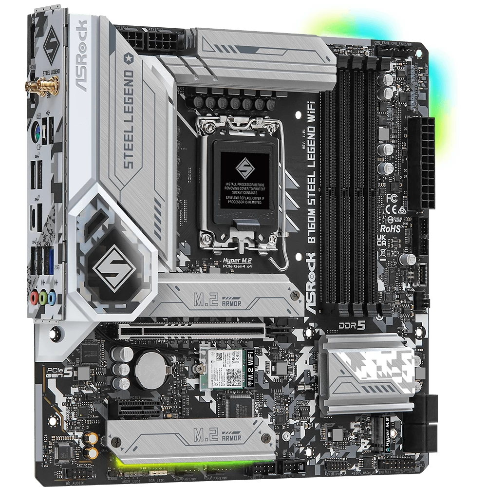 The ASRock B760M Steel Legend WiFi motherboard is based on the Intel B760 chipset, which supports Intel® 14th, 13th and 12th generation Core™ processors. This Micro ATX format motherboard offers high performance and outstanding functionality in the mid-range market, which can be an ideal choice for gamers and performance-oriented users. Whether for gaming, work or multimedia applications, this motherboard offers the user exceptional speed, durability and flexibility.
