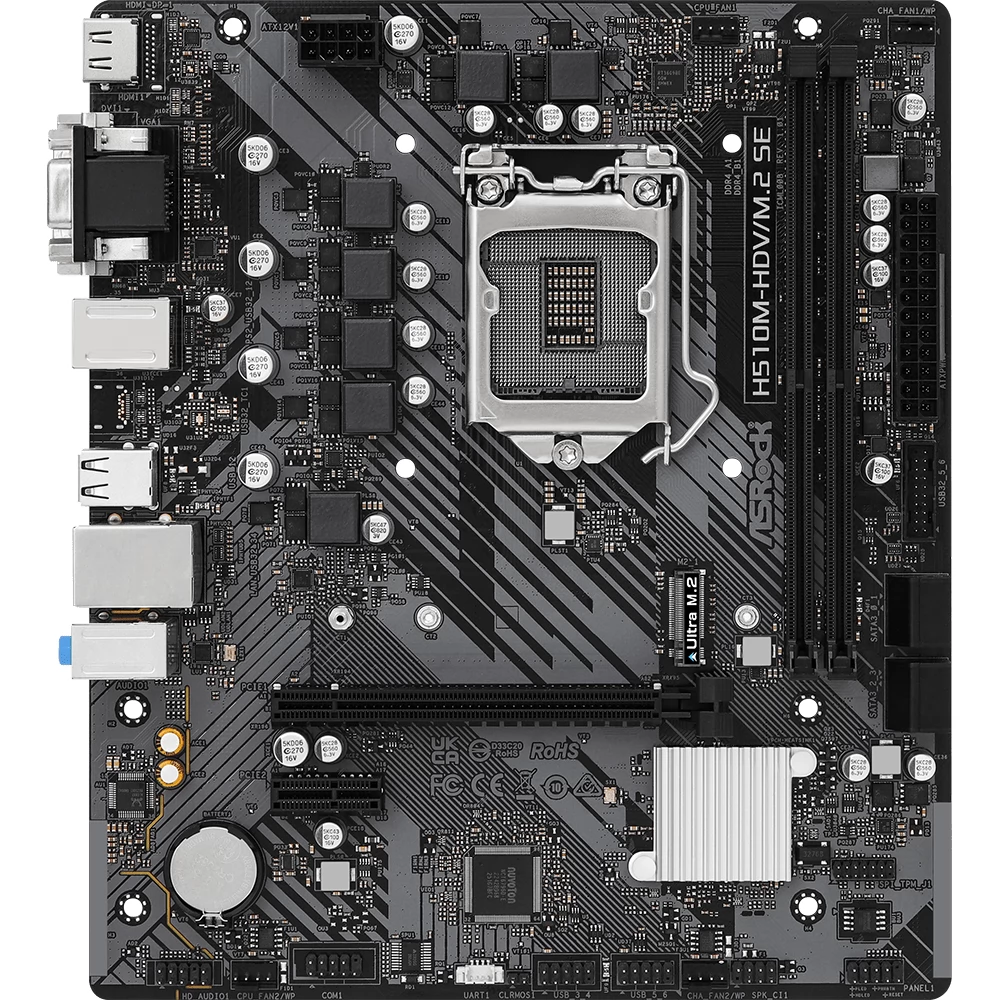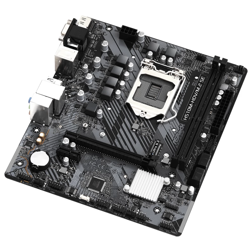 The ASROCK H510M-HDV/M.2 SE motherboard is based on the Intel H470 chipset, which is designed to support the 10th and 11th generation Intel Core processors. This Micro ATX motherboard is a budget-friendly yet powerful solution for those who want to build a basic but stable PC for home or office use. The board's simple design and easy handling make it an ideal choice for those who do not require a high-performance configuration.