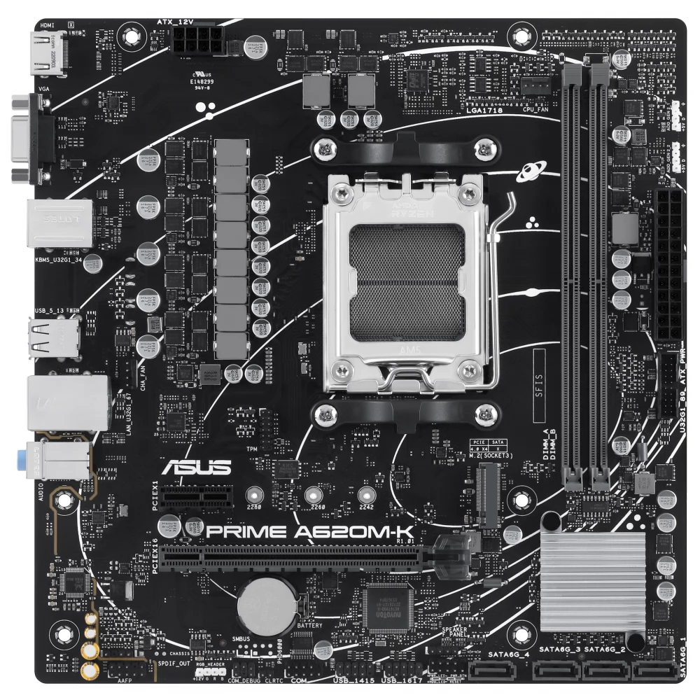 The ASUS Prime A620Ms motherboard is based on the AMD A620 chipset, which provides support for the AMD Ryzen ™ 7000 and 8000 series processors. This motherboard can be the perfect choice for those who want to take advantage of the latest AMD technologies, whether at home or office use. Prime A620Ms are specifically designed for users who are looking for a reliable yet cost-effective solution while not wanting to give up the performance of modern processors.
