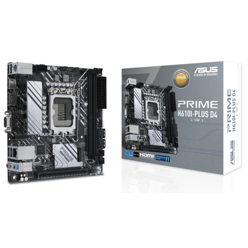 The ASUS PRIME H610I-PLUS D4-CSM motherboard is based on the Intel H610 chipset, which is specially designed to support the 12th generation Intel® Core™ processors. This motherboard has a Mini-ITX format, making it an excellent choice for building compact, space-saving systems that can be ideal for use in a home or office environment. As part of the Corporate Stable Model (CSM) program, ASUS provides long-term solutions and stable product support to help meet the needs of corporate users.
