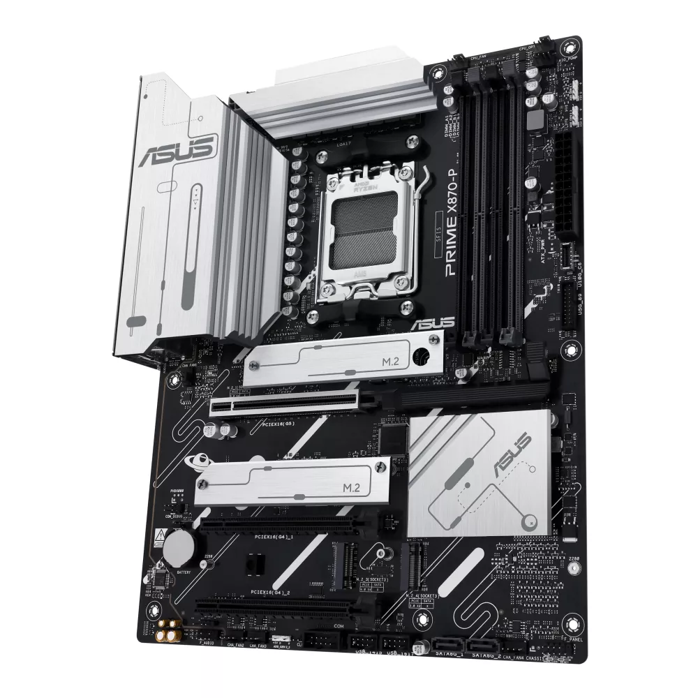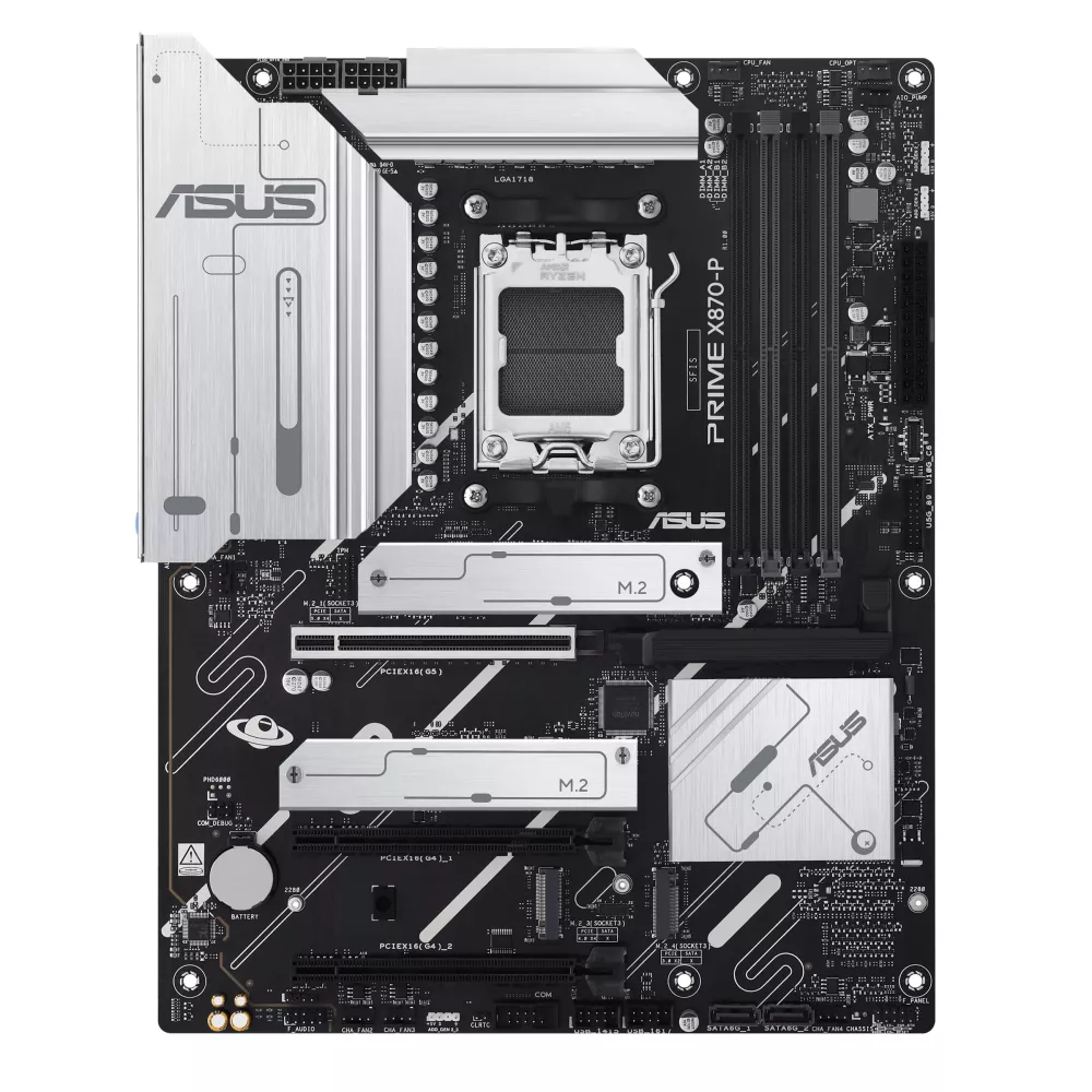 ASUS PRIME X870-P type motherboard with Socket-AM5 socket, AMD X870 chipset, video card integrated in the processor, 4 DDR5 memory sockets (max 192GB). 8 USB 2.0 ports, 7 USB 3.0 ports.