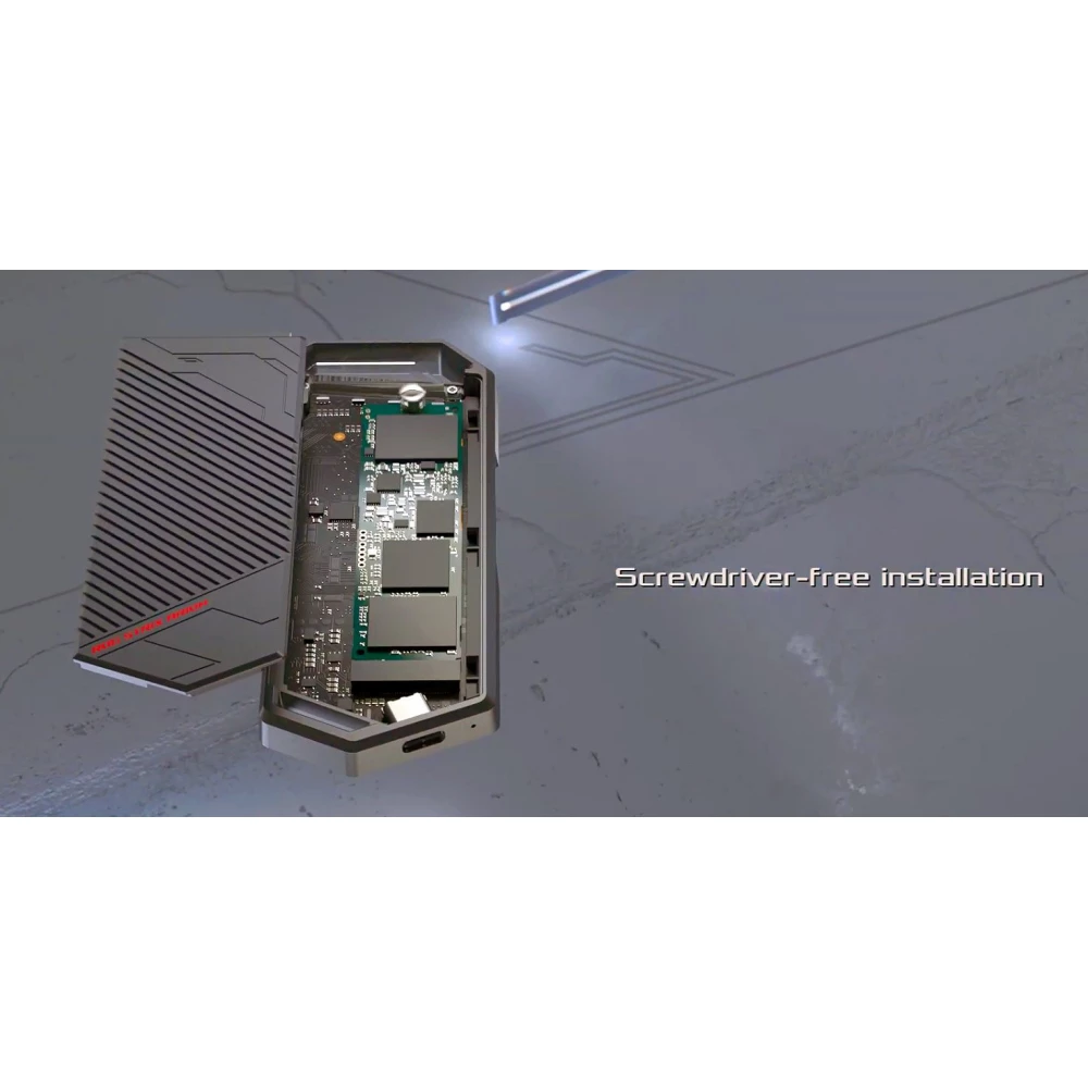 M.2-2280, M.2-2260, M.2-2242, or M2-2230 format SSD cards can be placed on board the new external SSD housing, and the fastening was solved using a tool-free method: we only need to screw a screw into place, which seems like an easy operation to do with bare hands. Of course, it is worth paying attention to the fact that the housing can only accommodate SSD cards that do not have a factory cooling plate - the housing itself also serves as a heatsink. The product made of aluminum alloy with a heat-conducting plate ensures the stable and magical operation of the SSD, so the performance is also predictable.