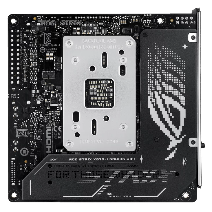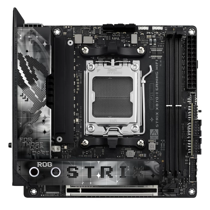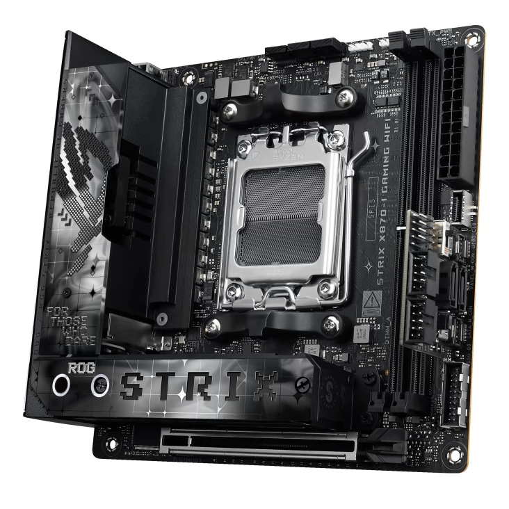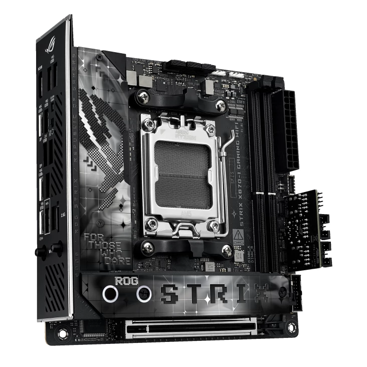 ASUS ROG STRIX X870-I GAMING WIFI motherboard with Socket-AM5 socket, AMD X870 chipset, video card integrated in the processor, 2 DDR5 memory sockets (max 96GB). 6 USB 2.0 ports, 10 USB 3.0 ports, 1 USB 3.1 port.
