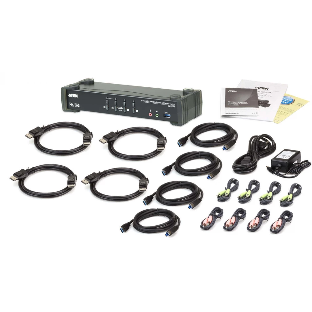 ATEN 4-Port USB 3.0 4K DisplayPort MST KVMP Switch (Cables included) CS1924M