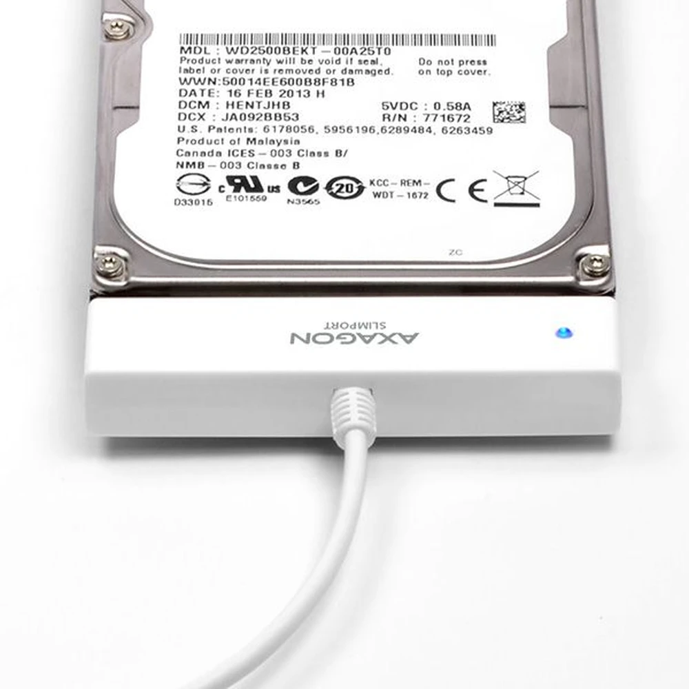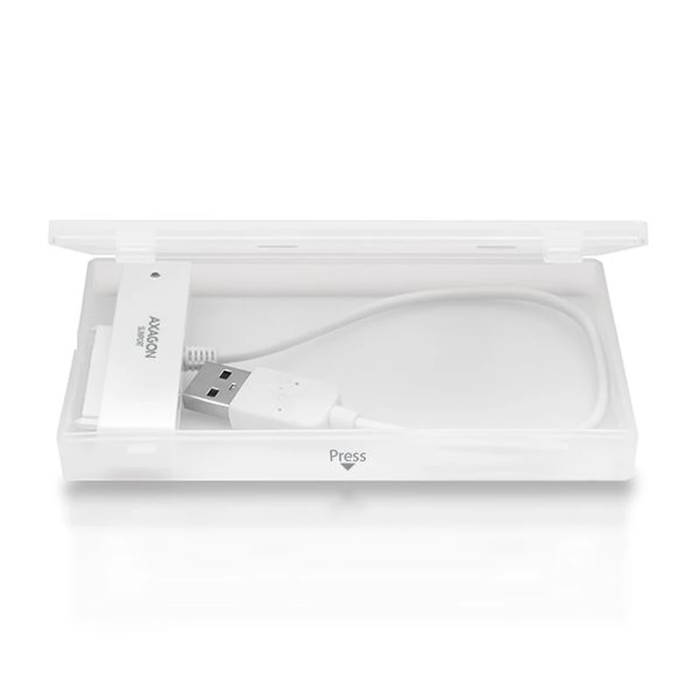 Compact AXAGON ADSA-1S SLIMport3 adapter with USB 2.0 connector for easy connection to a 2.5" SATA drive.