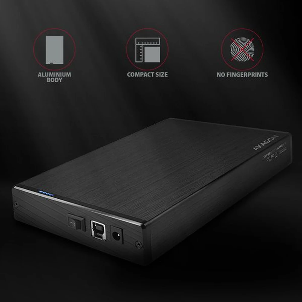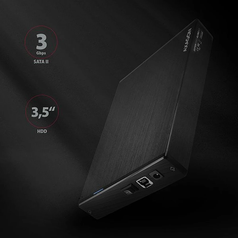 The compact aluminum AXAGON EE35-XA3 ALINE external case with high-speed USB 3.2 Gen 1 (USB 3.0) interface is designed for 3.5" SATA hard drives.