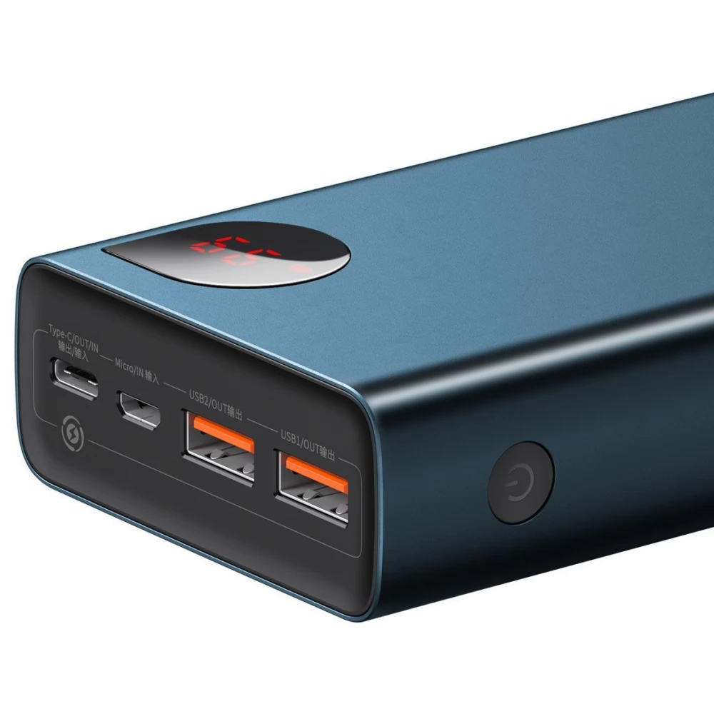The BASEUS Adaman Metal Power Bank 20000mAh 65W is a high-capacity battery pack that has 4 ports (USB-C (in/out), 2 USB-A (output only) and USB-Micro (input only), so it is suitable for charging laptops, tablets, smartphones or any device with a power of less than 65W that can be charged via USB on the go. A digital percentage meter is used to display power, voltage and current. It supports all fast charging protocol, including the PD 3.0, QC 4+ protocol. It is 20% thinner than the traditional 20000 mAh external battery, which makes it a perfect choice for traveling. Moreover, the aluminum alloy ensures the proper protection and durability, and the matte exterior further enhances the quality of the product.