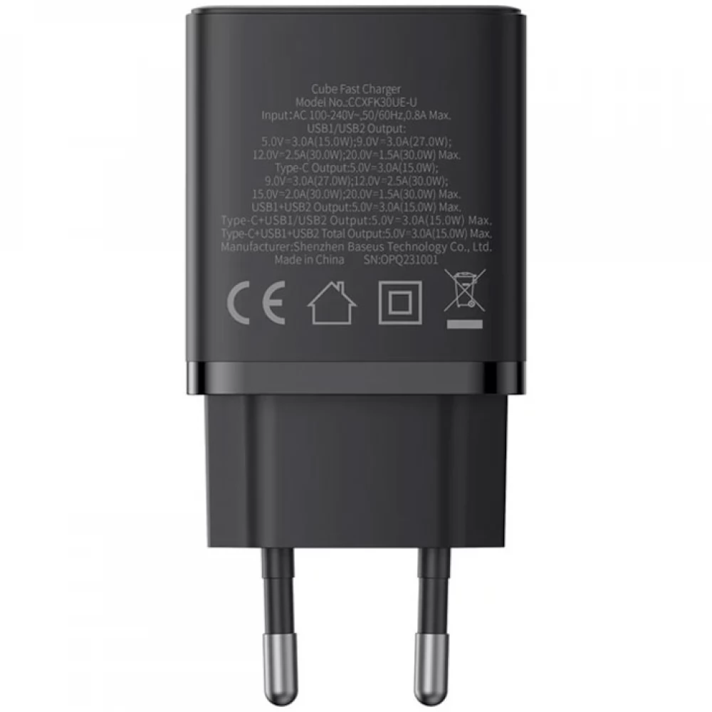 30 Watt Network Charger with 2pcs USB and 1pcs USB Type C connection.
