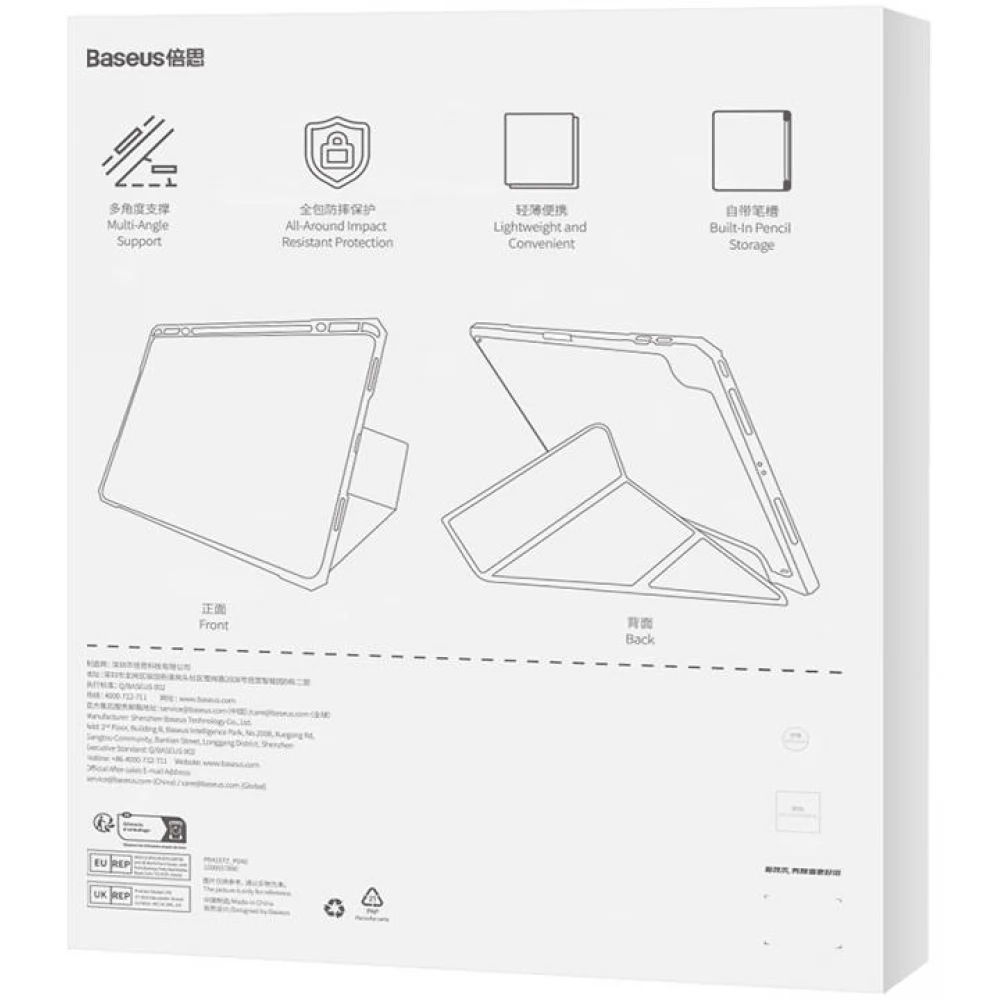 The BASEUS Minimalist magnetic case is designed for the iPad Air4 and Air5 10.9" models. It provides effective protection against bumps, scratches or dirt. It is also a perfect stand while playing games, drawing or doing homework. In addition, the case saves the iPad's energy, as it also has a wake-up and sleep function. Thanks to its ultra-thin design and light weight, it is easy to carry.