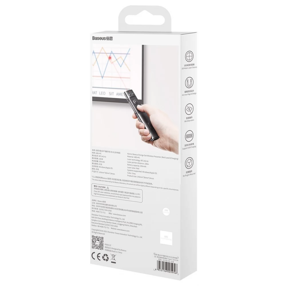 - Functionality: Laser pointer, volume control, screen off, tone change