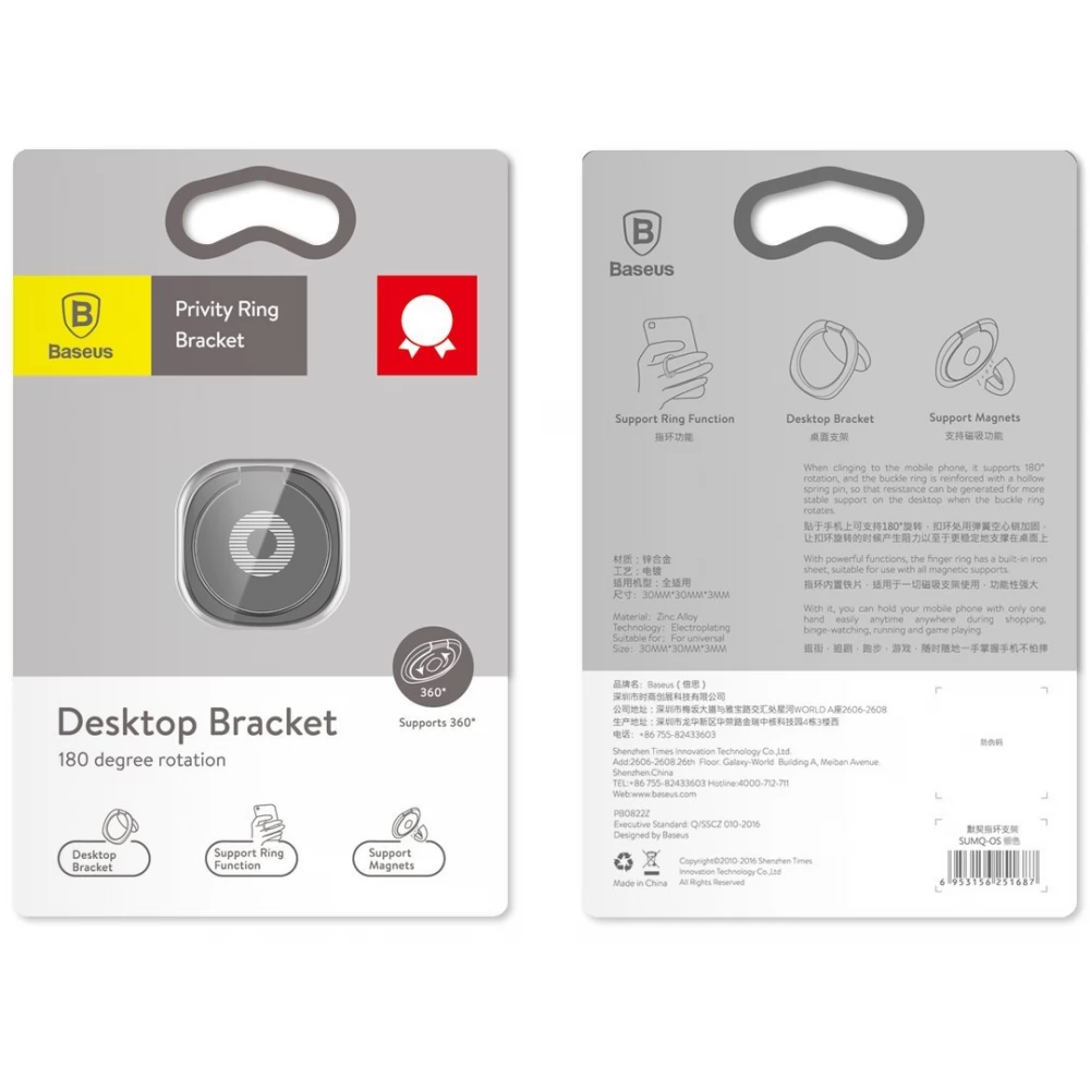 The Baseus ring holder is extremely light. Even thinner and lighter using special high-quality materials that have gone through many grinding and wear processes.