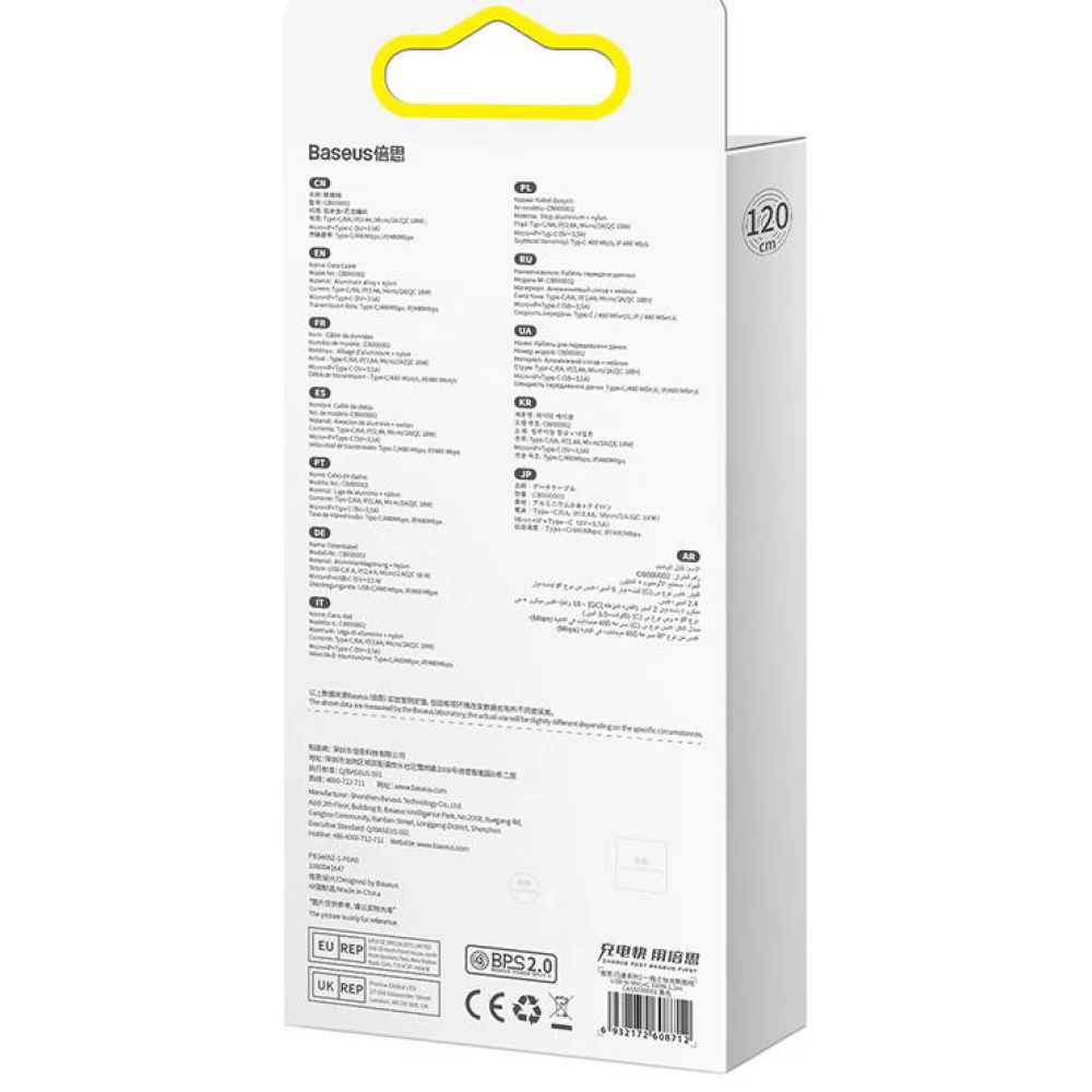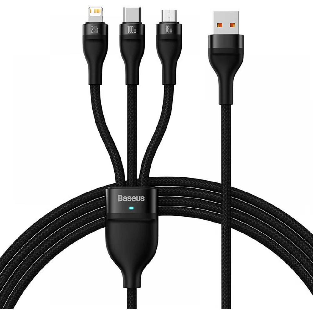 BASEUS USB Lightning + Micro USB + USB Type C Converter Black 1.2m CASS030001