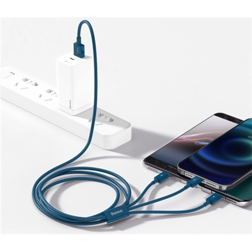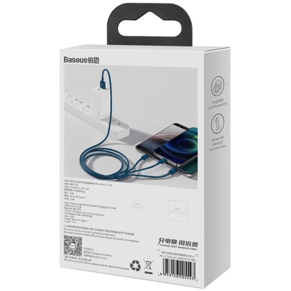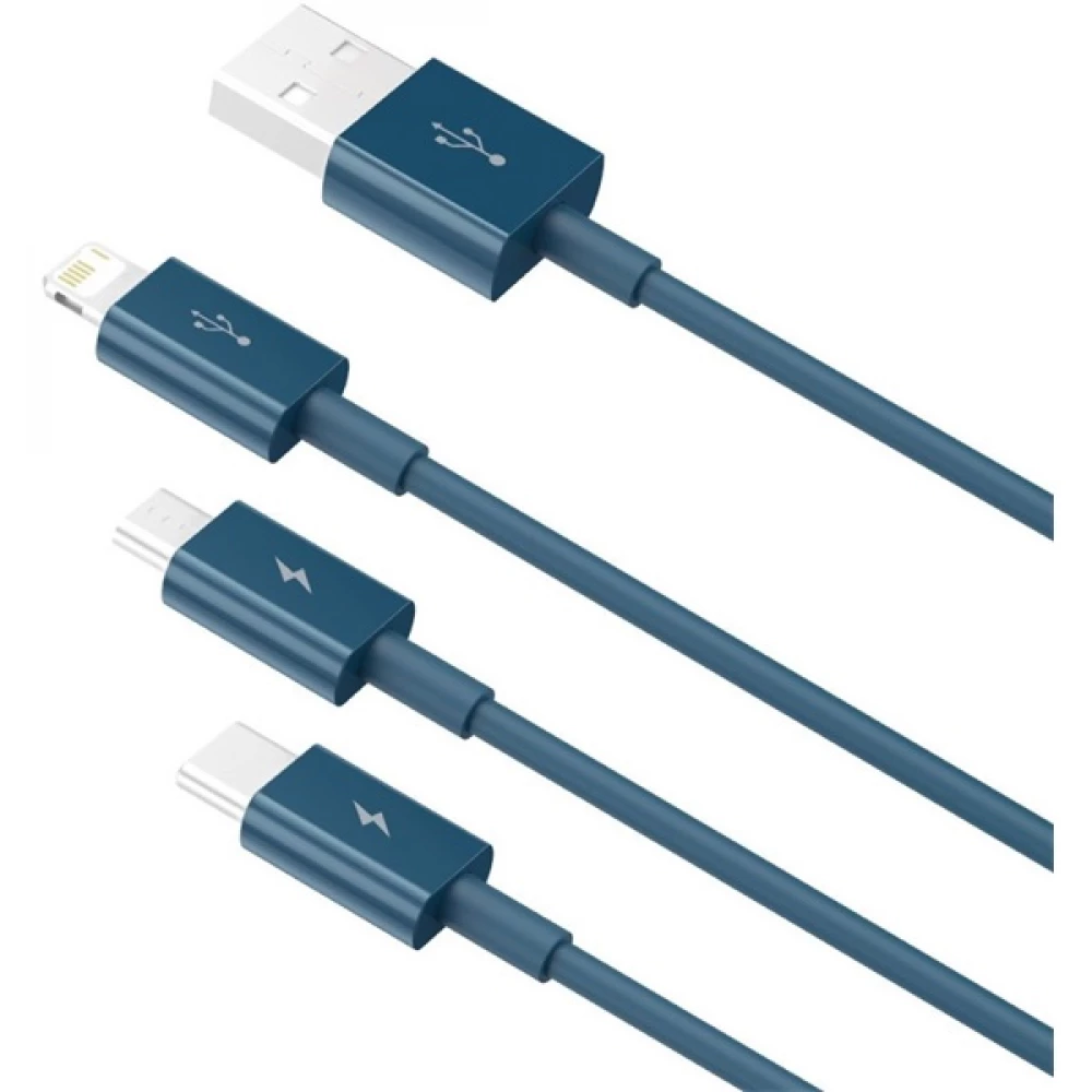BASEUS USB Lightning + Micro USB + USB Type C Converter Blue 1.2m CAMLTYS-03
