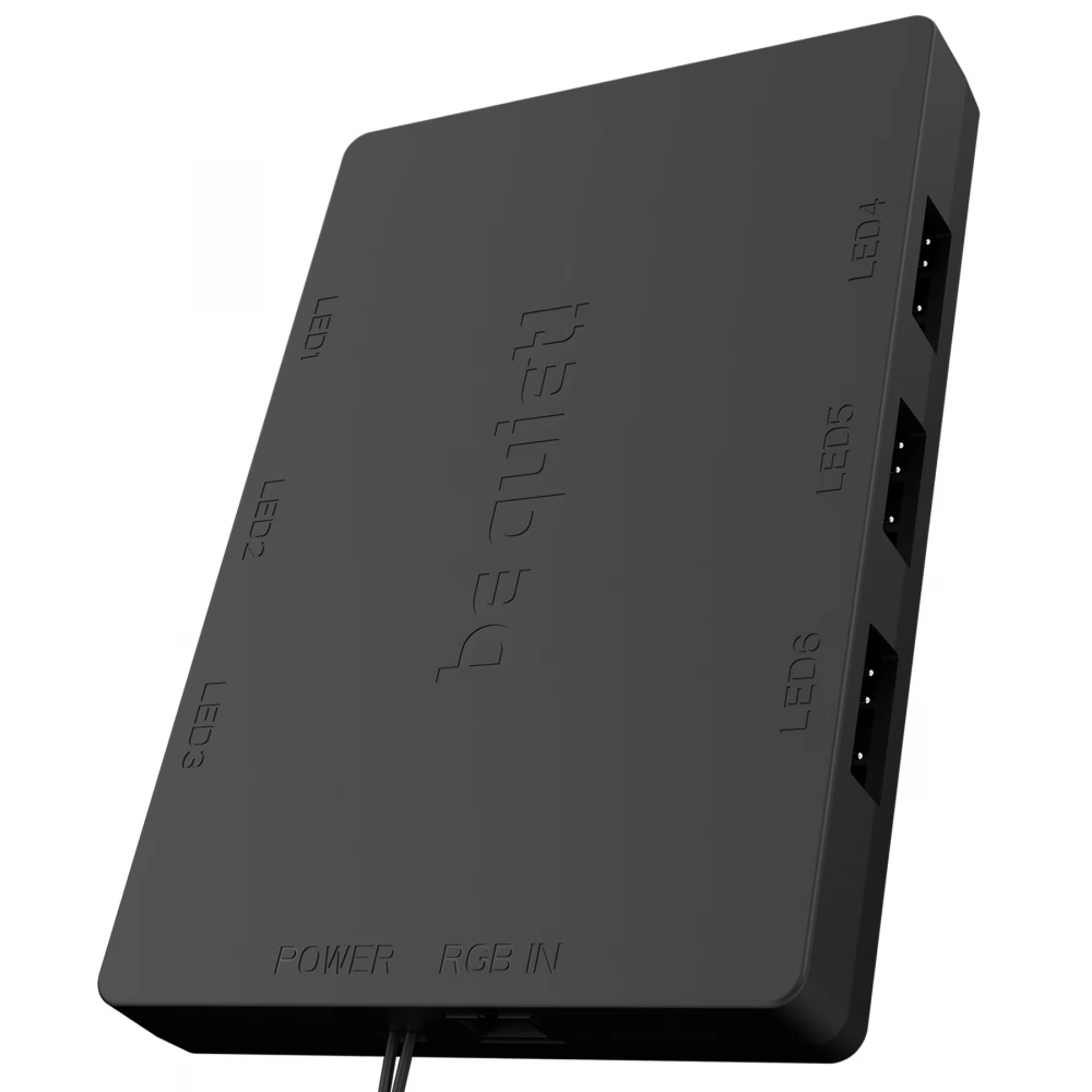 The included ARGB hub enables simultaneous synchronization of up to six ARGB devices. The user-friendly installation makes installation simple and convenient, and the elegant all-black ARGB distributor fits into any computer case. Like SSDs, it can be installed in the housing, but it can also be fixed anywhere else using the supplied double-sided adhesive.