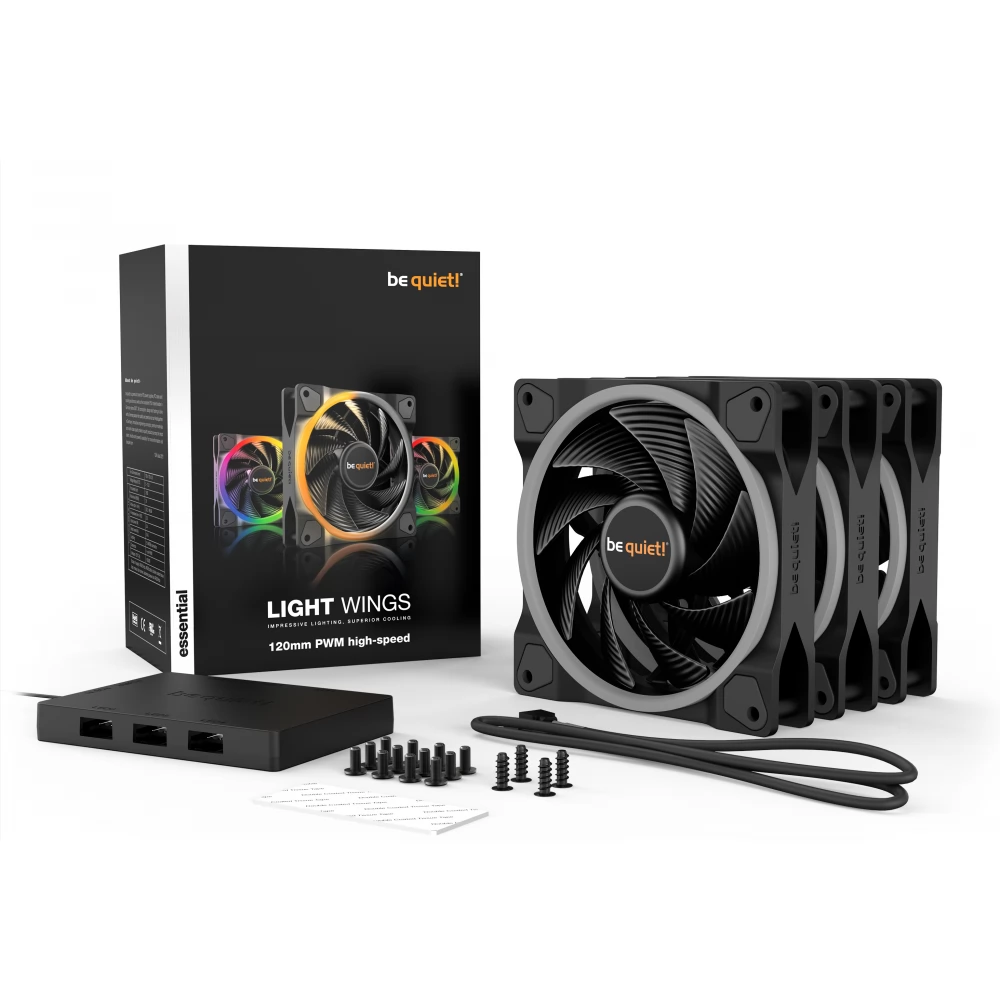 Be quiet! Light Wings 120mm PWM HS 3-piece set offers attention-grabbing, unique appearance, decorative lighting with strong performance, quiet operation and efficient cooling.