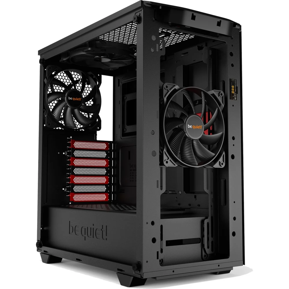 The three factory-installed Pure Wings 2 fans with blades optimized for air transport ensure perfect airflow and cooling. Despite the compact housing design, the front, top and rear fans are 140 mm, so they operate very quietly. Up to two additional 140 mm fans can be installed.