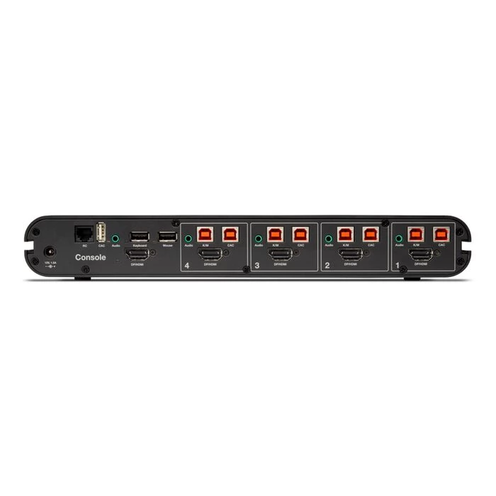 Belkin KVM remote control integrated keyboard imitates color coding extruded shape that supports the counter -mounted mounting (optional) Supports TAA combined and video cables for easy installation Supports up to four farms. Sound and peripherals prevent data leakage between computers in one-way data paths: Optical data diodes prevent peripherals from being used to break systems Display Safety: Protected display prevents data leakage via the monitor with analogous sound with 3.5 mm jack connector USB device detection prevents unauthorized use of peripherals unauthorized access and secure labeling: Holographic, unauthorized access product label visual signaling and preventing unauthorized access quick switch: No keyboard or mouse delay when shifting ports, minimal video be able to modify unauthorized