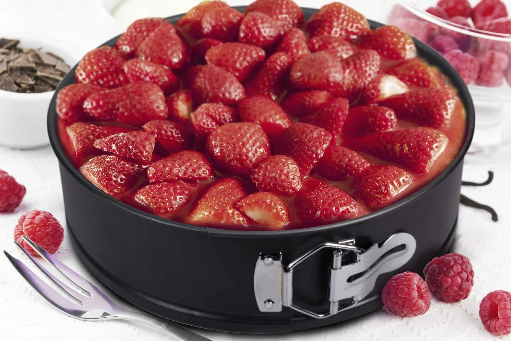 The cake pan is black in color, which gives the kitchen elegance and cleanliness.