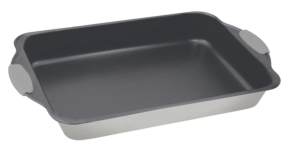 - Deep oblong baking tray with silicone tongs