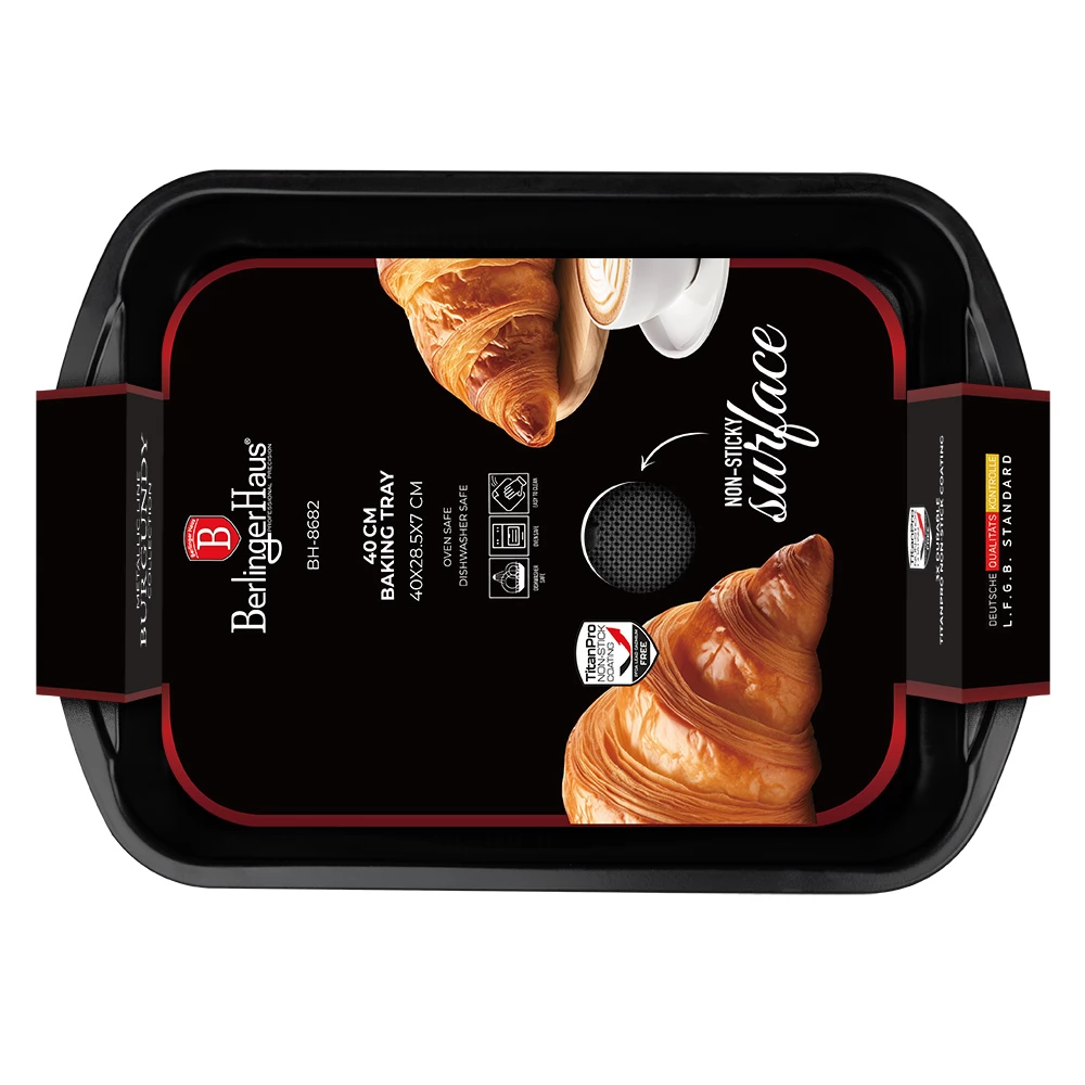 The baking tray (40 cm) is part of the Metallic Line Burgundy Edition, which represents a new generation of kitchen utensils. This baking pan is not only functional but also stylish, so you can put it on the kitchen counter, you don't have to hide it in the drawer.