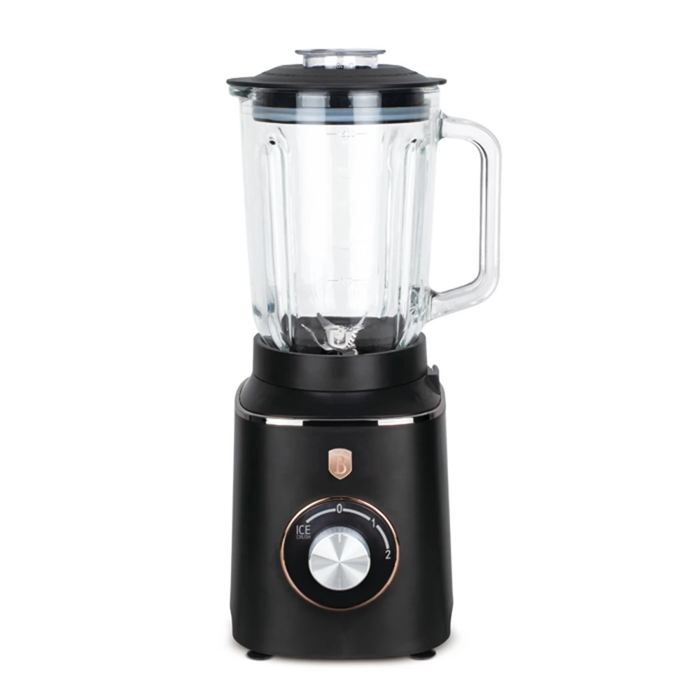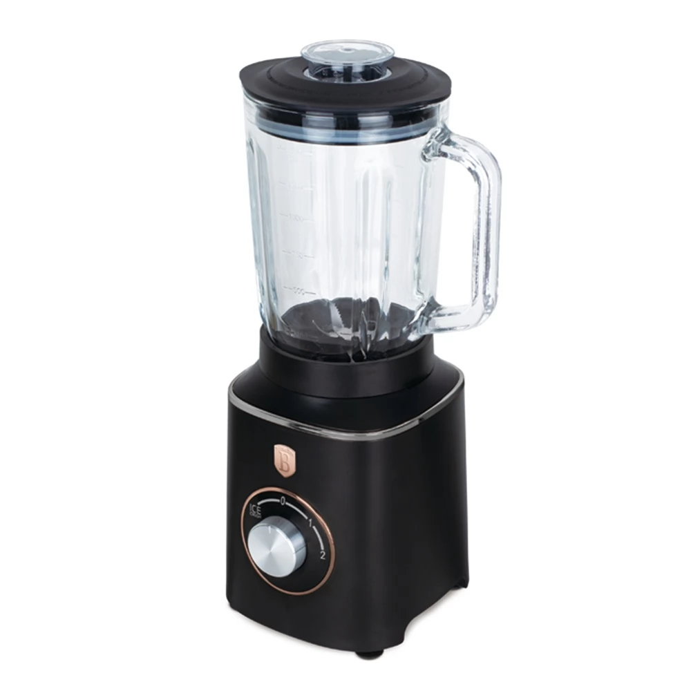 Blender with 1.5 L standard tempered glass jug (1000 W) as part of the Black Rose Collection - An essential accessory for elegant and modern kitchens. Thanks to the 1000 W power, the most delicious milkshakes, smoothies and crushed ice can be prepared in seconds. And with the black-rose gold color combination, it becomes really stylish during kitchen work.
