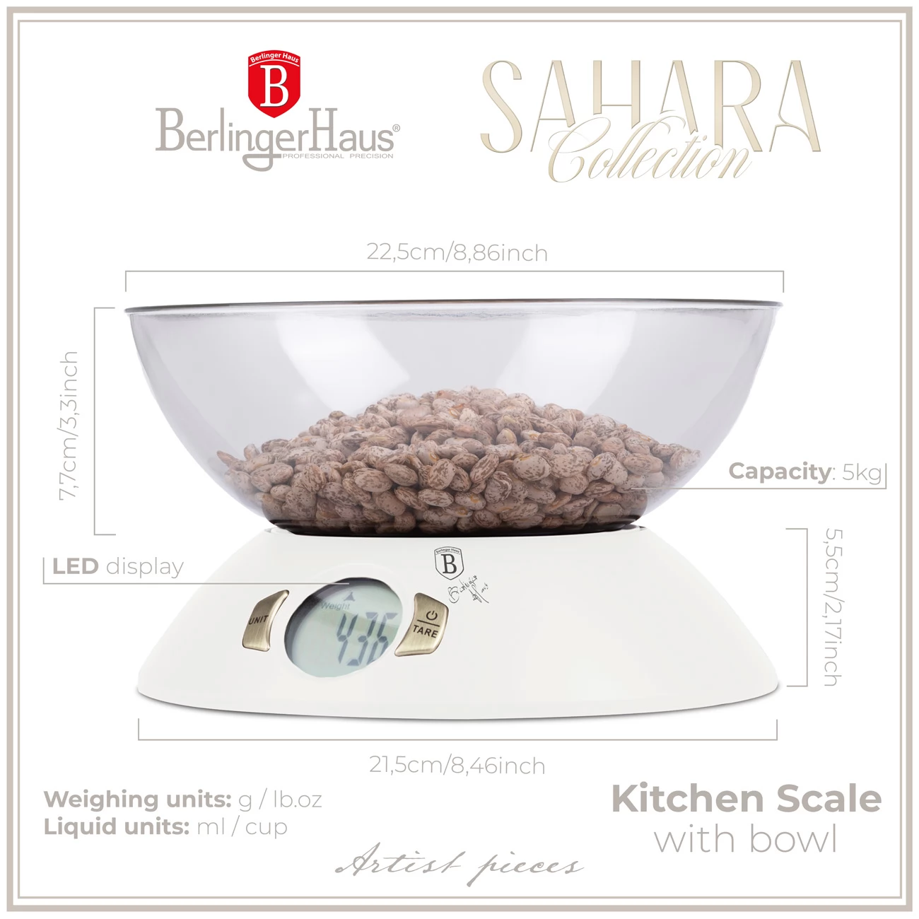 The Sahara Collection kitchen scale with bowl can be a real gem for your kitchen, as it is not only practical, but also stylish. The quality materials and clean design guarantee that you will be able to use this product for many years.