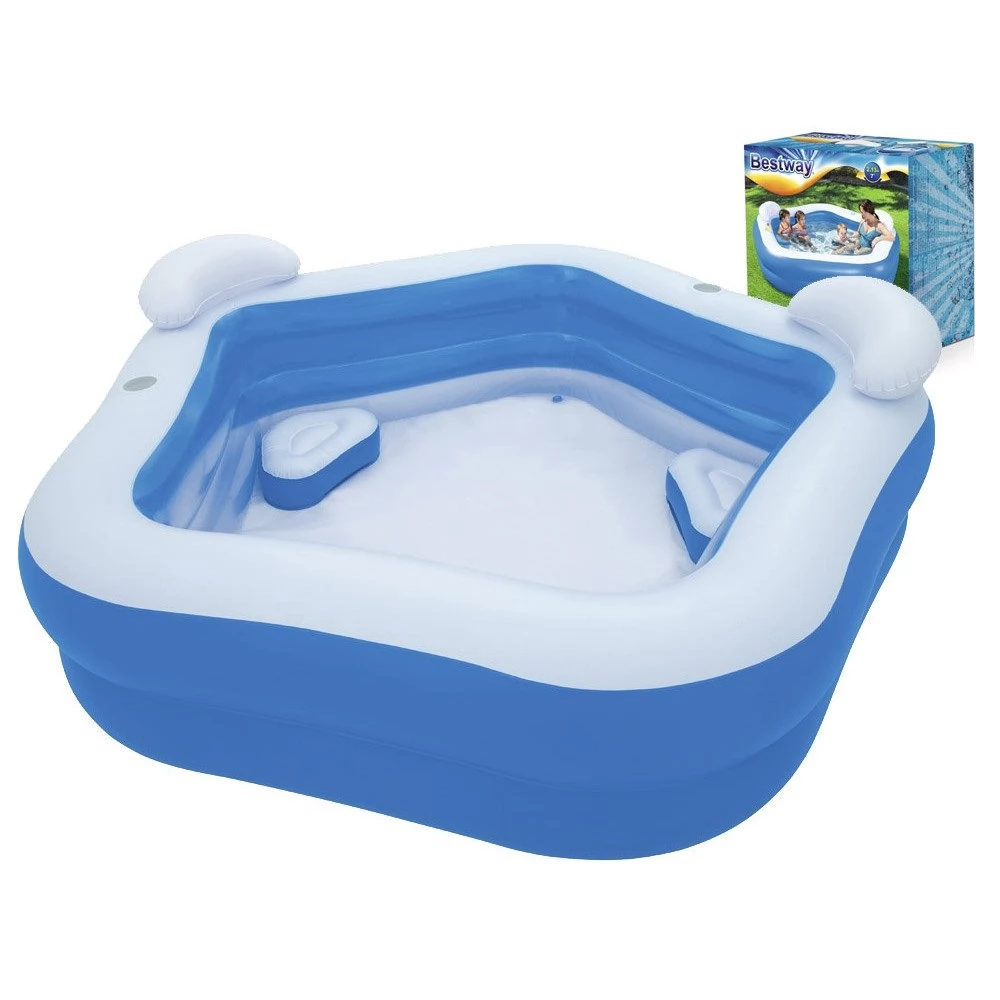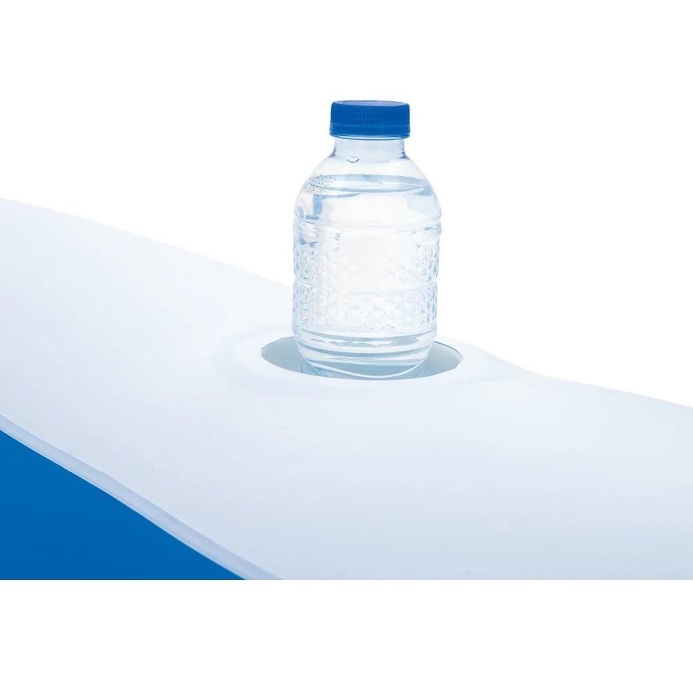 The Bestway® Family Fun inflatable pool offers great fun for children aged 2 and up who also love to splash around in the pool on hot summer days. Another advantage is the puncture-resistant material, which can withstand children's water toys for many years. An even more comfortable seat in the pool is guaranteed by 2 built-in inflatable pillows, a headrest and a cup holder.