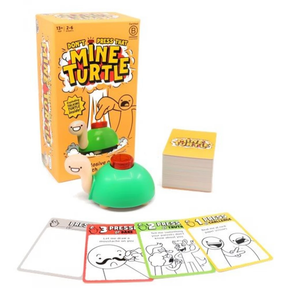Mine Turtle is a very easy to learn board game for 2 to 6 players, the average play time is short, only 15 minutes. Despite its easier learning, we only recommend it from the age of 13. The gameplay builds heavily on acting, the dare and win, the player's elimination and take the mechanisms.