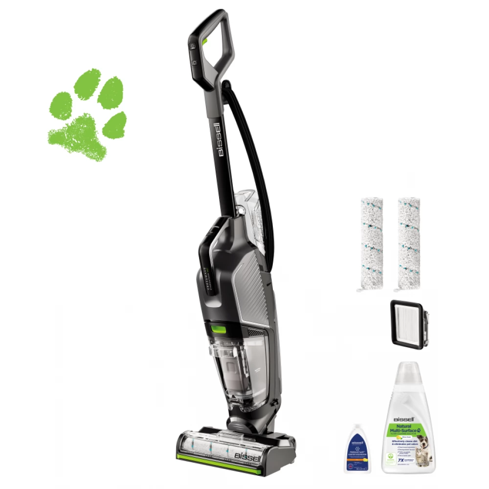 Unlike a mop and bucket, Two-Tank technology keeps clean and dirty water separate, so you can always clean the floor with fresh water. The natural Multi-Surface Pet cleaning solution removes everyday dirt and grime, leaving clean floors and a fresh-smelling home. The automatic self-cleaning cycle not only cleans the brush roll, but also the inside of the machine, so you have to do less cleaning after cleaning. This device not only cleans pets, but also helps save them. BISSELL® is proud to support the BISSELL Pet Foundation® and its mission to help save homeless pets. When you buy a BISSELL® product, you help save pets.